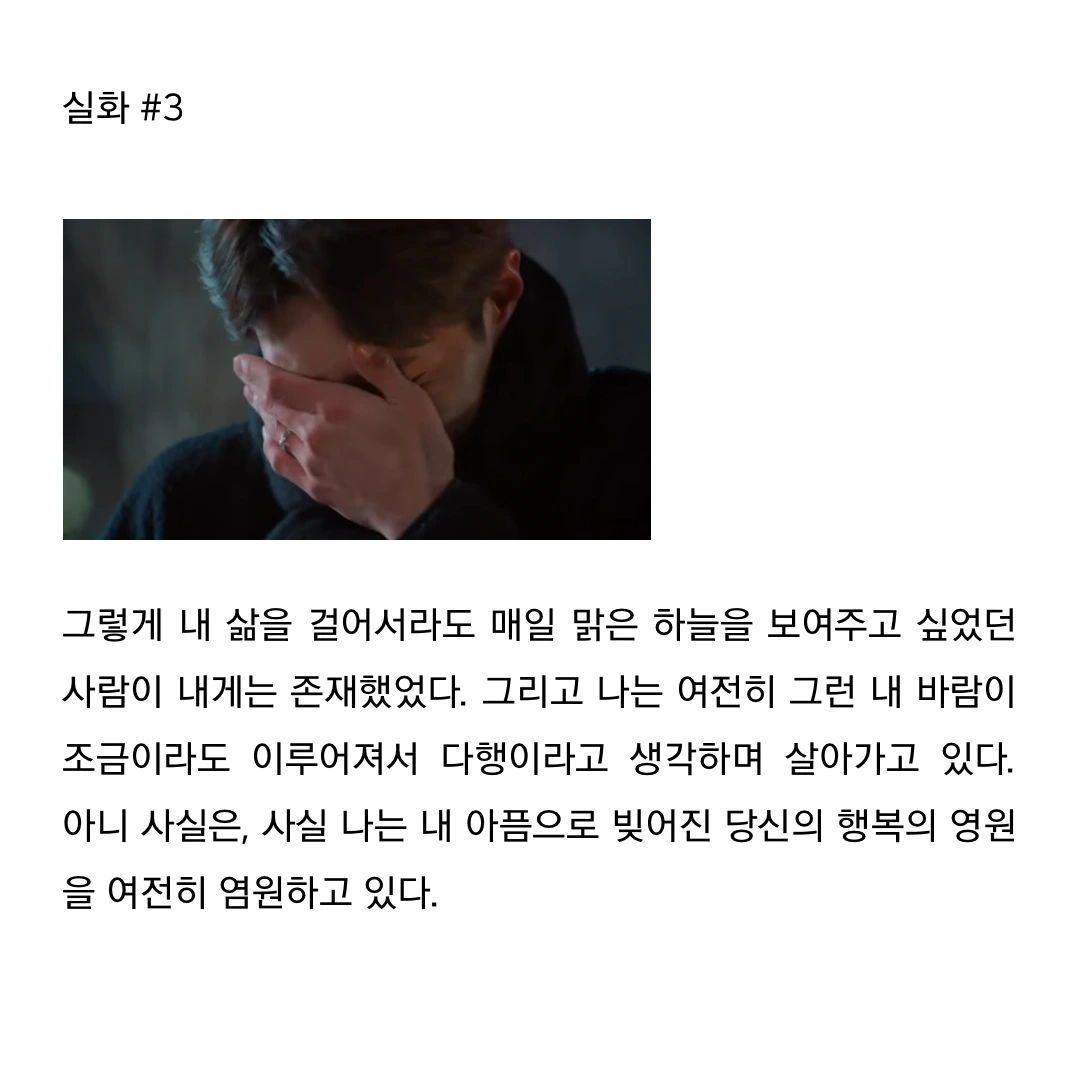 아니 사실은, 사실 나는 내 아픔으로 빚어진 당신의 행복의 영원을 여전히 염원하고 있다.