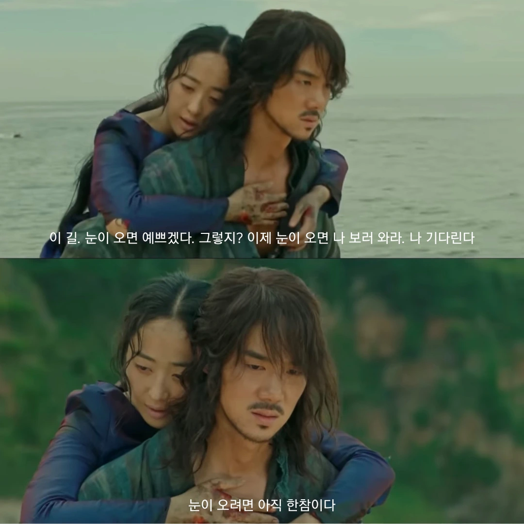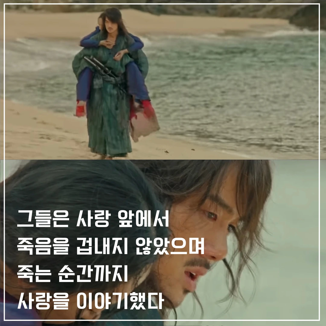 미스터 션샤인을 보며 혼자 하는 사랑에 대해서 생각해 보았다. 구동매는 고애신을 고애신은 유진초이를 그리고 구동매를 사랑하는 쿠도히나와 고애신을 사랑하는 김희성까지 이들은 각자의 사랑을 하고 있다. 그리고 그 사랑 어떤 것에 묶어두려고 하지 않으며 자신의 사랑을 상대방에 강요하지도 않는다. 말 그대로 그 마음 자체로 만족하는 사랑을 한다는 것이다. 모두의 마음은 간절했다. 누구 하나 간절하지 않은 사람이 없었다. 자신을 희생하면서까지 누군가를 사랑했으니까 말이다. 그들은 사랑 앞에서 죽음을 겁내지 않았으며 죽는 순간까지 사랑을 이야기했다. 그리고 죽음에 순간에 이르면서 마침내 자신의 마음을 알아챈 사람도 있을 것이다. 나는 쿠도히나와 구동매의 마지막 모습을 보며 생각했다. 구동매도 결국 쿠도히나를 사랑했을 것이라고, 쿠도히나의 마지막을 위해 바다로 향했을 때 그리고 그 바다를 걸으며 대화할 때 그 순간은 구동매도 사랑의 감정을 느꼈을 것이라고 결과적으로 이생에서 이루지 못한 사랑으로 끝났지만, 그들의 마음은 누구보다 아름다웠다고 볼 수 있다.