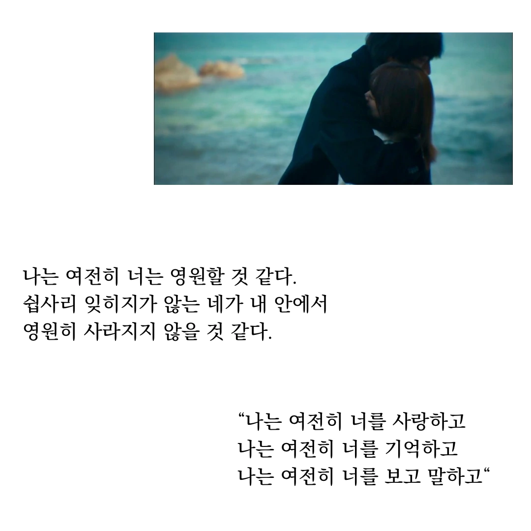 나는 여전히 너는 영원할 것 같다. 쉽사리 잊히지가 않는 네가 내 안에서 영원히 사라지지 않을 것 같다.
