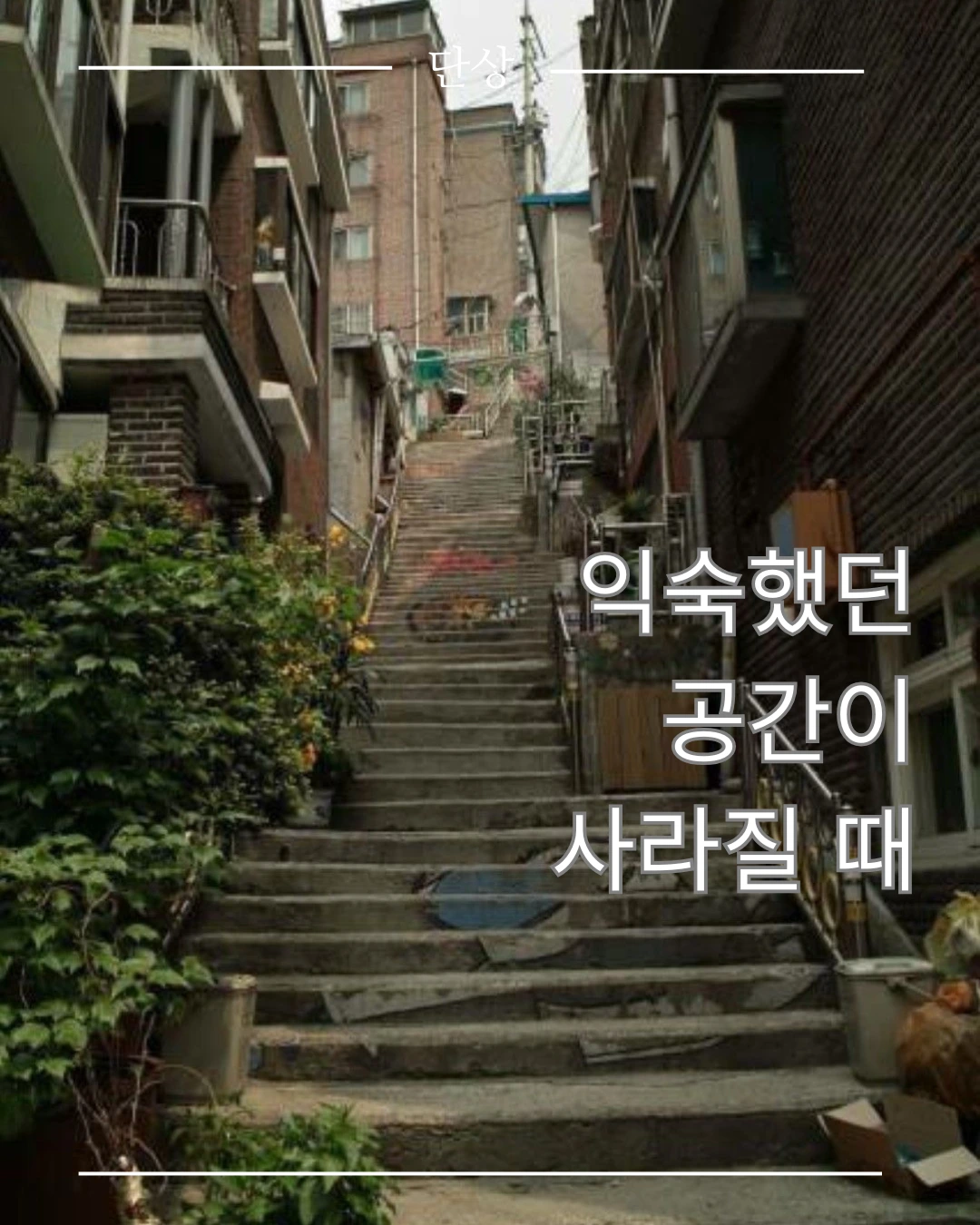 20년 동안 자리를 지키던 미용실이 사라졌다. 늘 내가 입버릇처럼 말하던 대로 익숙한 공간이 사라지는 건 참 슬픈 일이다. ‘임대’라는 글자가 붙은 텅 빈 가게를 보니 별별 생각이 다 들었다. 마음 한구석이 허전해지고 이유 없이 미안하고 괜스레 우울한 기분까지 밀려왔다.
