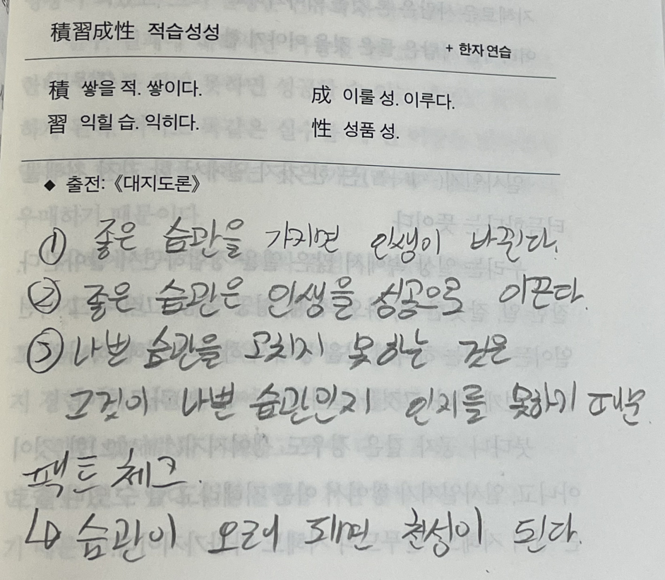 “습관이 쌓이면 성품을 이루고, 성품이 쌓이면 한 인생의 운명을 결정한다.” 노자 <<대지도론>>