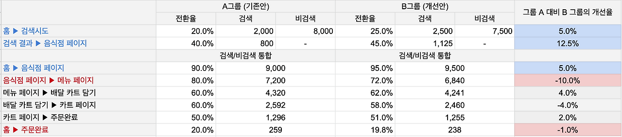 - 홈 > 음식점 페이지 진입율 5% 증가.