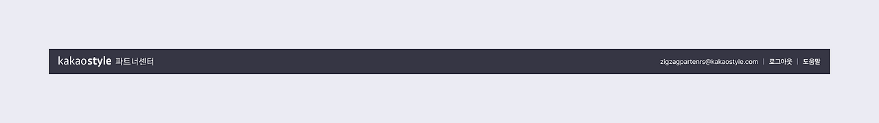 현재 파트너센터 GNB는 크게 좌측 영역과 우측 영역으로 나뉜다. 좌측은 파트너센터 로고, 우측은 로그인 시 계정 정보와 로그아웃, 도움말 버튼이 있다.