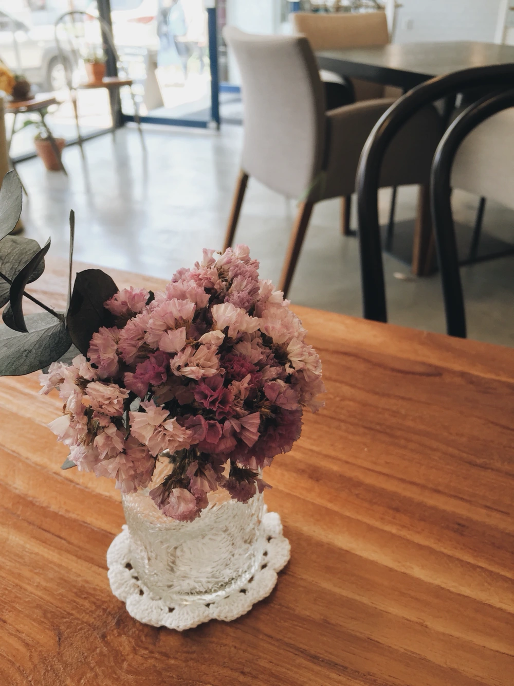 테이블마다 놓여진 드라이 플라워의 센스라니. 카페에 사람이 많은지라 구석구석을 찍을 순 없었지만, 천장이며 벽이며 구석구석 드라이플라워로 잘 꾸며져 있다.