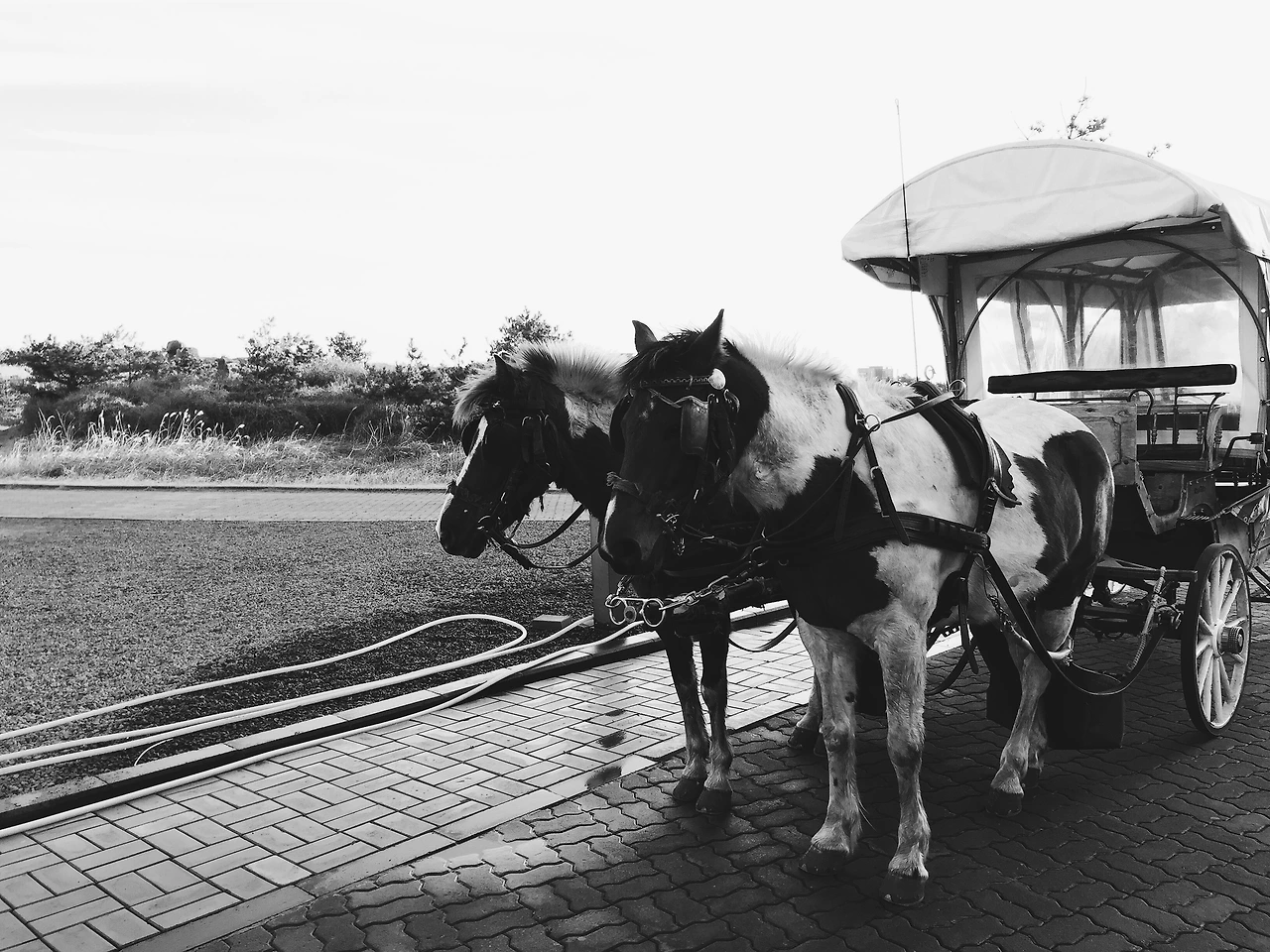 섭지코지 입구와 글라스하우스를 왕복하던 마차. 다그닥 다그닥 말발굽 소리가 운치있지만, 더불어 헥헥 거리며 지쳐보이는 말들이 한없이 안타까웠다. 흙길이 아닌 보도블럭을 다니는 말이라니..