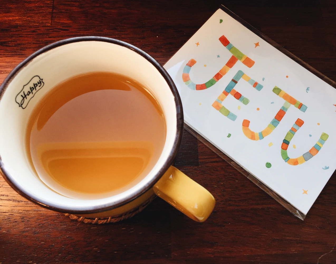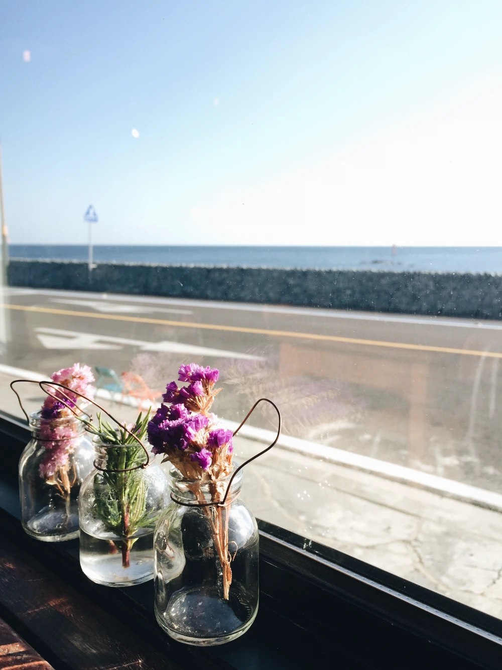그녀의 남편인 이메다님에게 제주 영귤차를 한잔 주문하고, 카페에 차려진 바다보석을 몇 점 구매한 뒤에, 창가자리에 앉아 제주 남쪽의 바다를 구경하다보면 여타의 관광지와 다른 기분이 든다. 사람이 북적하지도 않고, 오가는 차량도 별로 없으며, 매끈한 장판같은 바다를 보는 맛이란...