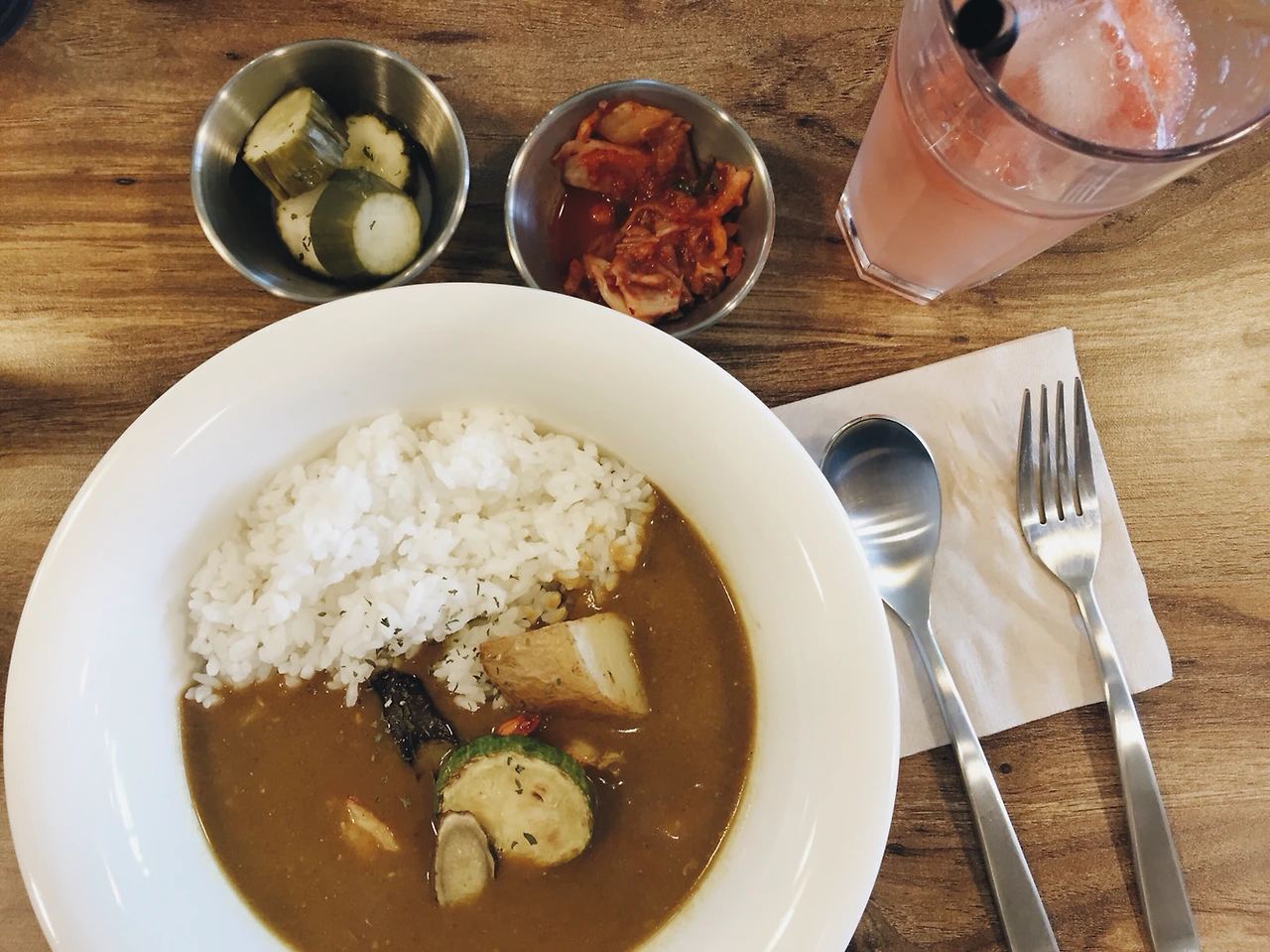 예상했던 데로 두툼하게 썬 애호박과 감자가 들어간 쉬림프치킨카레. 카레안에 치킨과 새우도 자리잡고 있다. 밥에 카레를 조금씩 비벼서 먹으니 별거 없는 하루의 한 부분이 채워지는 것 같다.