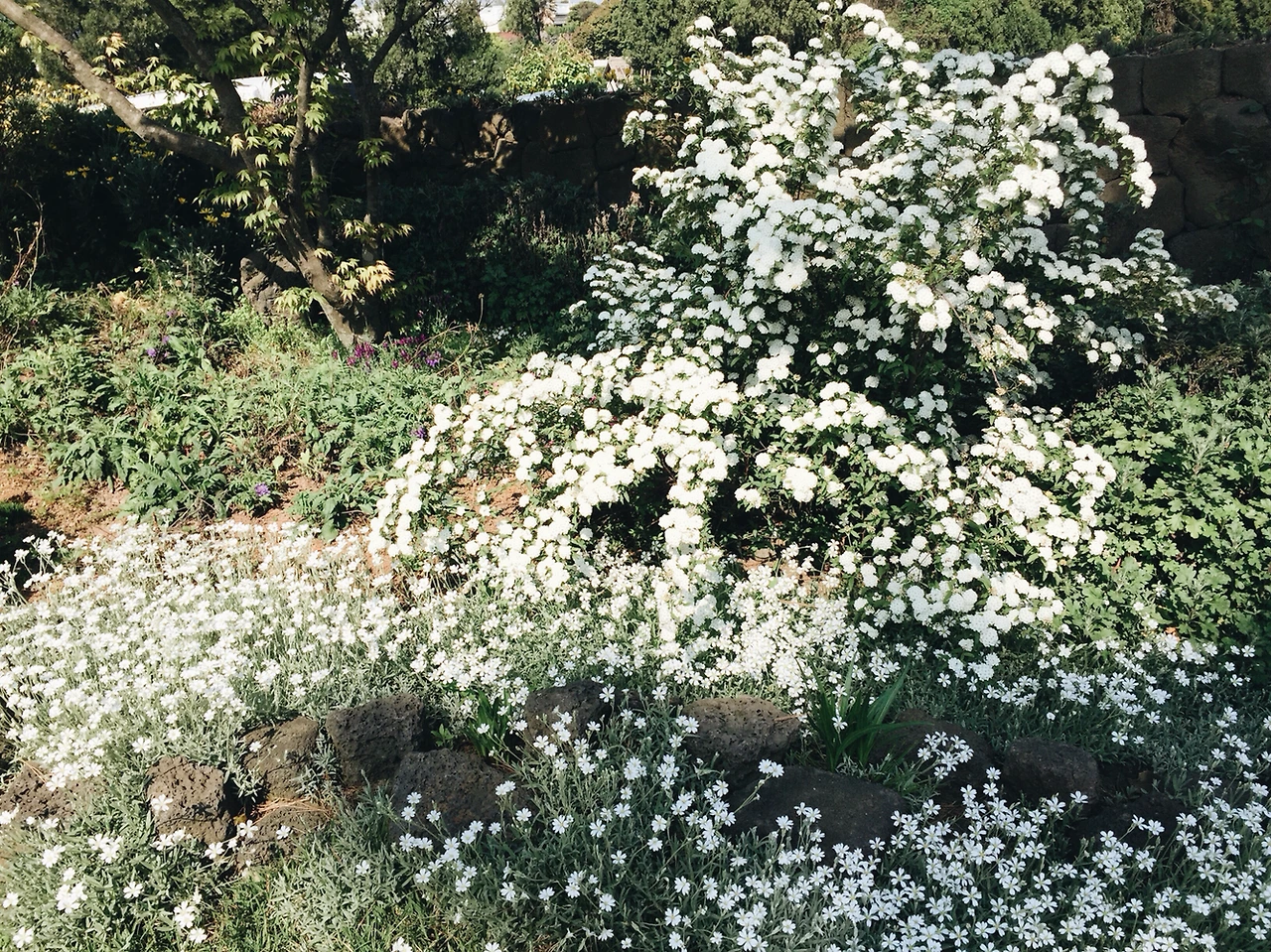 마당 한구석 흐드러지게 피어있는 꽃들.