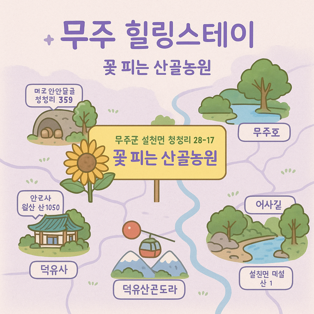 <주거로운 로컬생활> 매거진 1호로 소개드릴 곳은 2024년 5월~11월까지 '농촌치유관광 활성화 콘텐츠 개발 컨설팅'을 진행한 전북특별자치도 무주군 적상면에 위치한 '꽃피는산골농원'입니다.