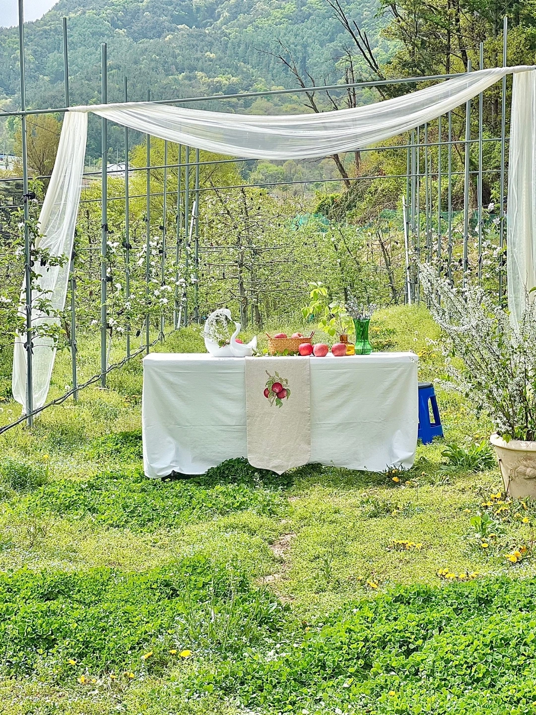 처음엔 귀농이 아닌 귀촌을 목적으로 무주에 정착했는데, 매입한 밭에 있던 사과나무를 키우시던 동네 어르신께서 “내가 그동안 키우던 사과나무를 이제는 당신들이 키워봐라. 농사짓는 법은 내가 알려주겠다”라며 떠맡기는 바람에 계획에 없던 농사꾼의 길로 들어서게 되었다고 합니다. 하지만 전혀 후회는 없고 오히려 농사를 시작한 것에 감사하고 하루하루 행복한 마음이었다고 해요.