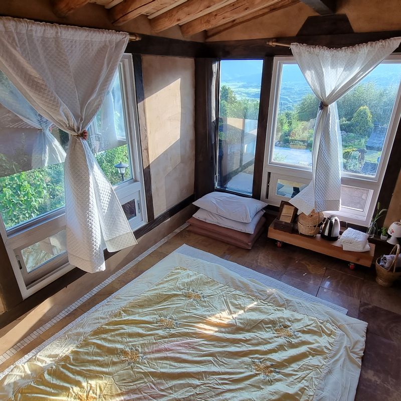 가장 대표적인 것은 정감 있는 숙소죠. 시골의 정취를 잔뜩 머금은 숙소에서 편안한 밤을 보낼 수 있답니다. 아침 식사 전 자유시간을 활용해 보세요. 마을을 가볍게 산책하거나 금향다원 내 카페에서 차를 마실 수도 있어요. 차를 자유롭게 드실 수 있도록 준비해 두었으니 개인 물병을 가져와 이용하셔도 좋고요. 물론 늦잠을 주무셔도 괜찮아요.