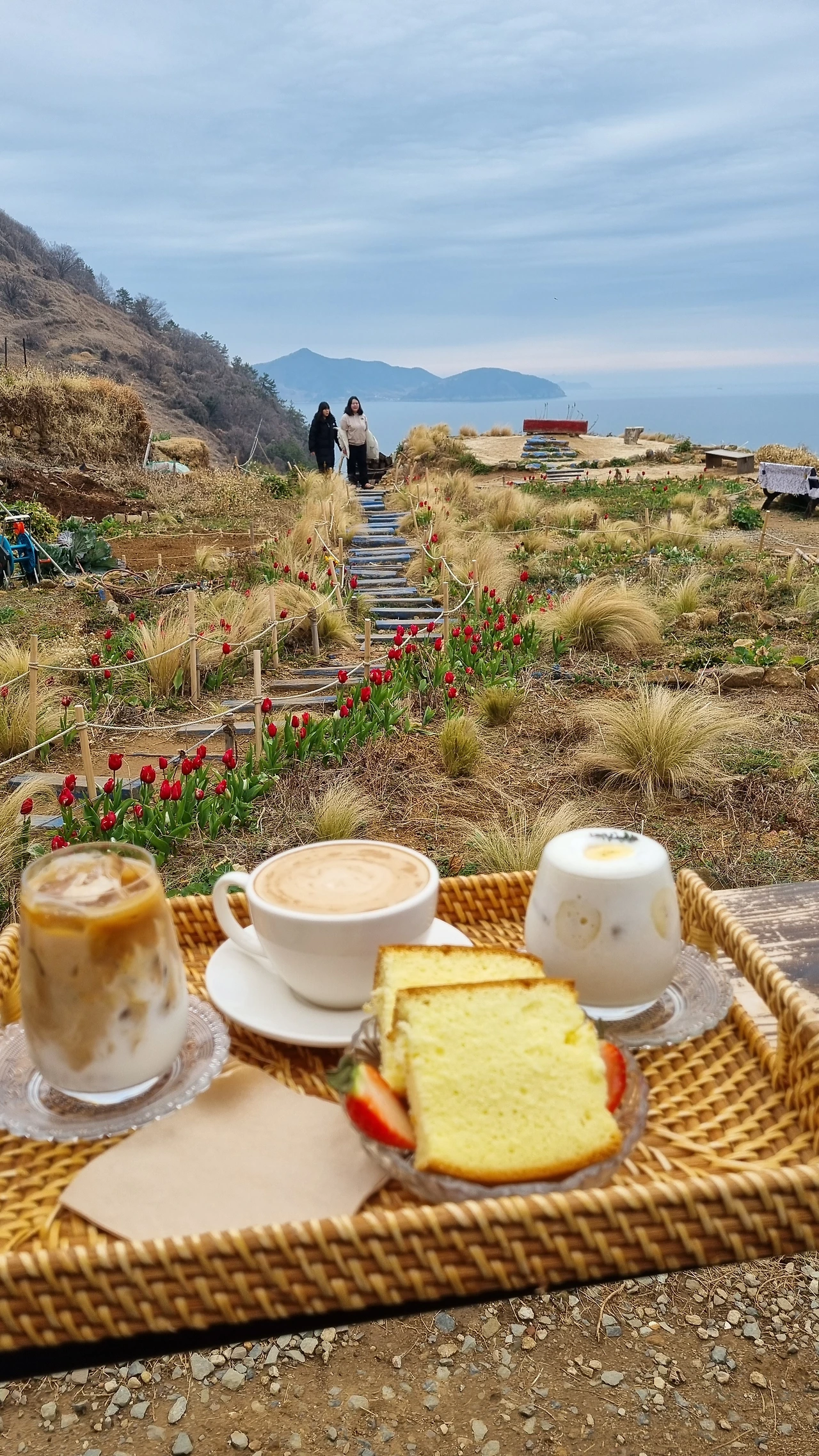 다랭이마을 사무장님이나 이장님이 운영해 주는 '달빛 걷기' 프로그램은 숙박을 하는 여행객들에게 마을에서 전해 내려오는 이야기와 밤풍경을 즐길 수 있도록 구성돼 있습니다. 그리고 일주일에 4일만 문을 여는 쌀빵과 샐러드, 좋은 커피를 파는 '카페톨'이 있어요. '카페톨' 마당에서 바라보는 남해 바다는 유럽 감성이 느껴지는 매력적인 경관을 자랑합니다. 터줏대감 고양이가 거니는 모습은 움직이는 그림 같아요.