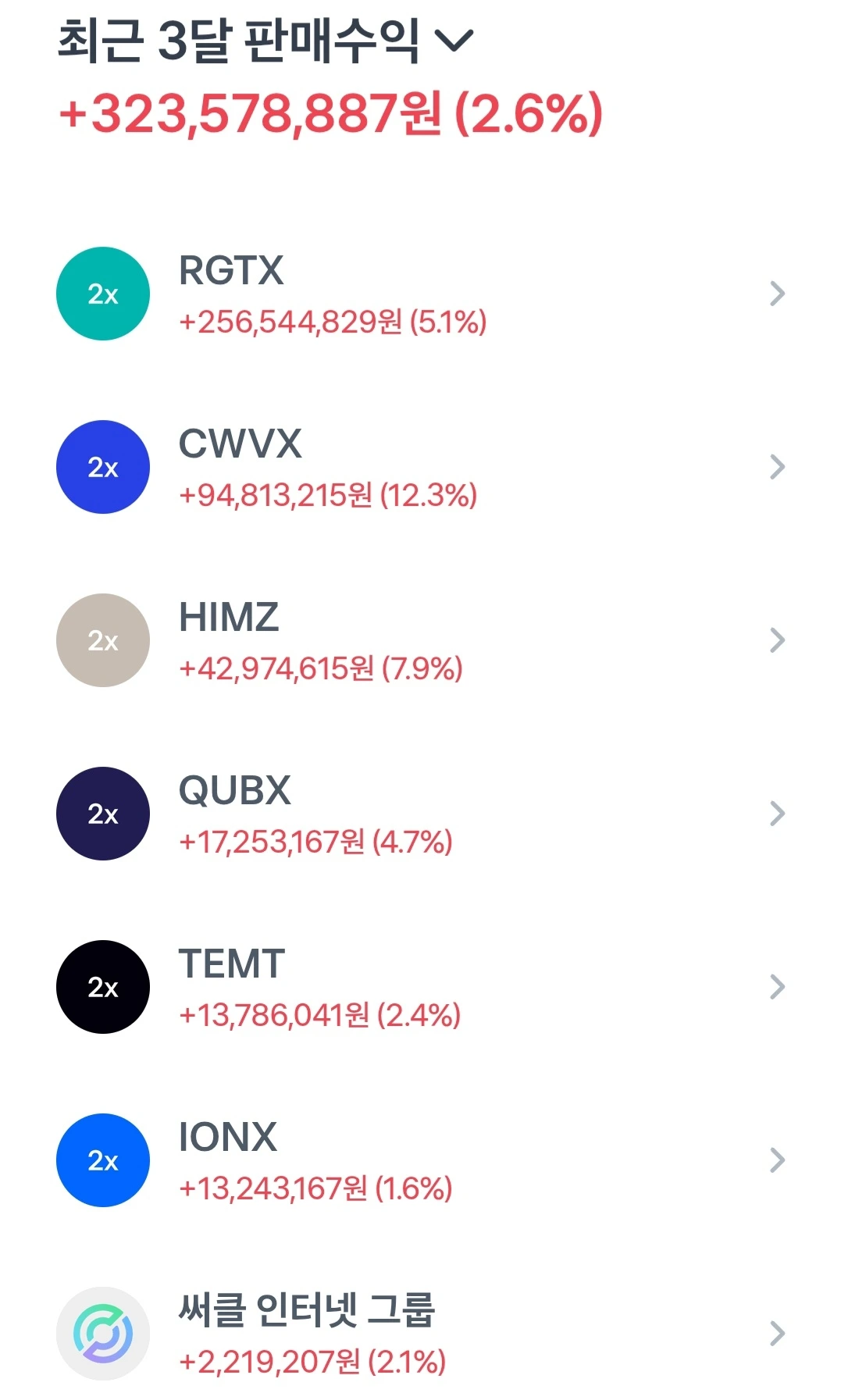 오늘은 레버리지 상품으로 지속적인 소득을 올리는 고수를 탐험해 보려고 한다. 토스증권 인플루언서, 팔로워 5000+ 이상인 그녀는 최근 3개월 판매수익이 3억 2천만 원 이상으로 월평균 1억이 넘는 판매이익을 만들고 있는 고수다. 특이할 점은 평균수익률을 2.6%로 높지 않다는 점이다. 직전 1개월 가장 높은 수익률은 12.3%의 판매이익금이 약 9.5천만 원으로 단일 종목에 7.7억 정도를 투자한 셈이다. 자세히 매매기록을 살펴봤다.