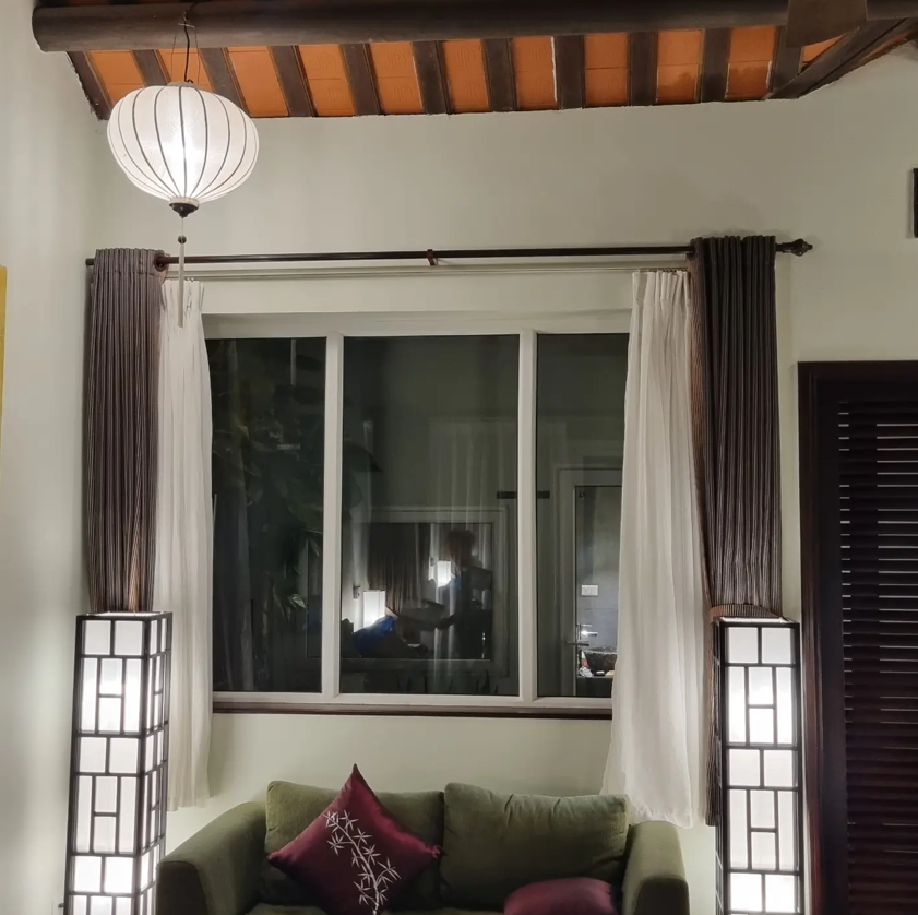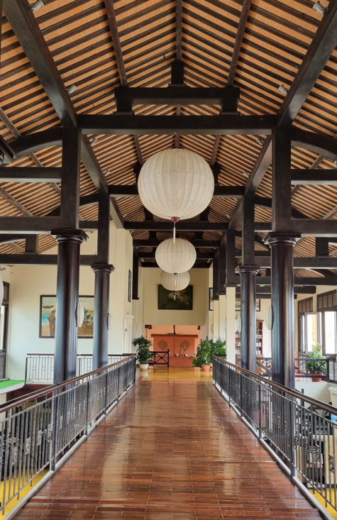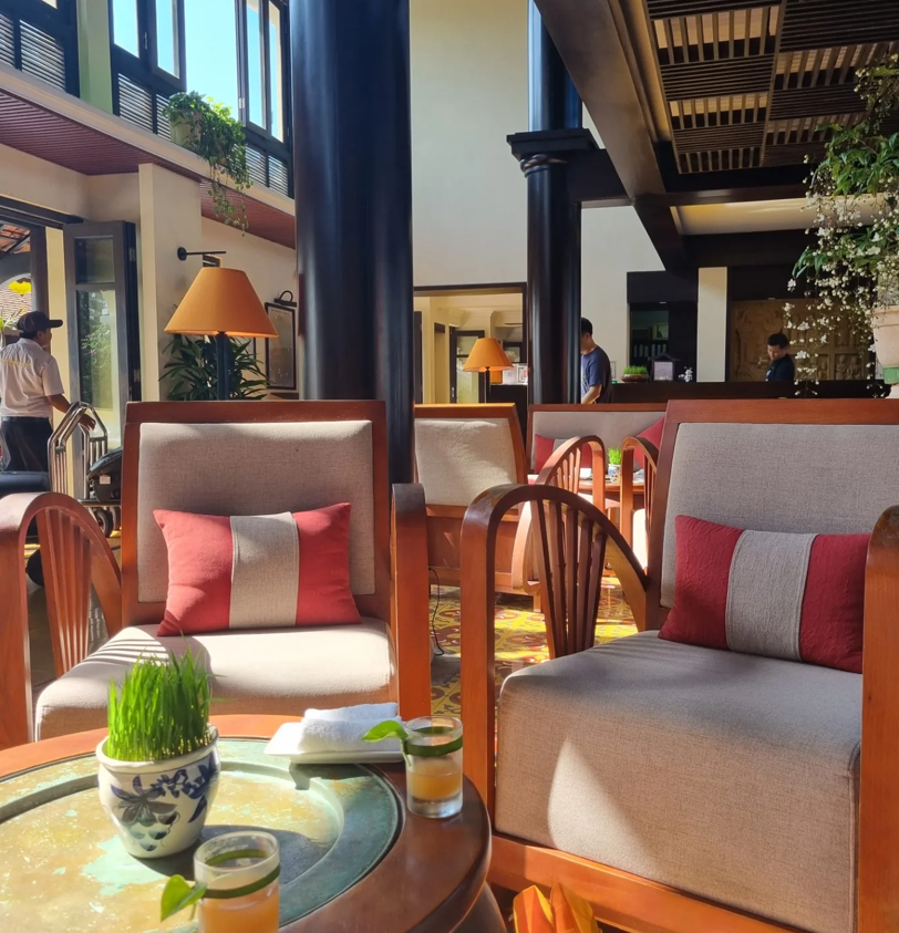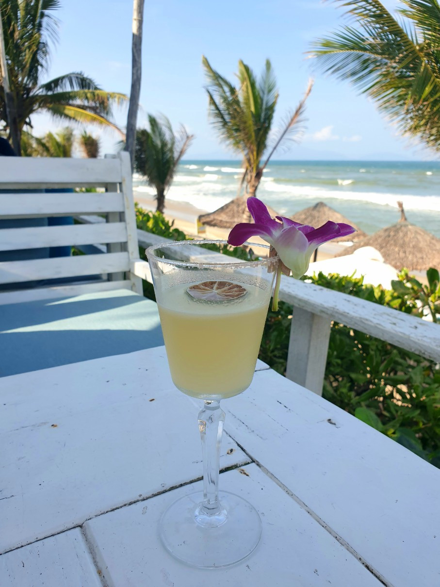 숙소 내부는 베트남 특유의 미학이 돋보였습니다. 은은한 호이안 등불이 천장에 매달려 있고, 나무 본연의 결을 살린 서까래 구조와 정갈한 좌식 공간은 단순한 호텔 방이 아닌 로컬의 품격 있는 집처럼 느껴졌습니다. 테라스 너머로 끝없이 펼쳐지는 프라이빗 비치와 거친 돌로 쌓아 올린 방파제는 그 자체로 자연과 인간이 공존하는 로컬의 풍경을 완성했습니다.