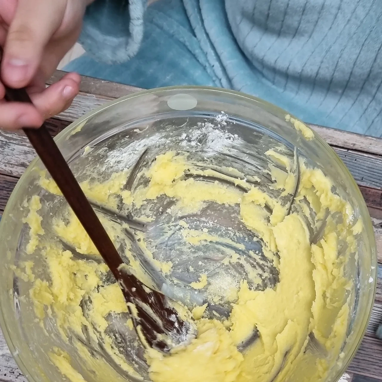 세 번째 요리는 버터를 잔뜩 넣고 만드는 버터 크랙 쿠키였다. 버터를 으깨고 달걀노른자만 한 개 넣은 뒤 다시 섞어야 한다. 설탕을 한 움큼 넣고 잘 섞은 후 박력분을 넣어 반죽을 완성하면 된다.