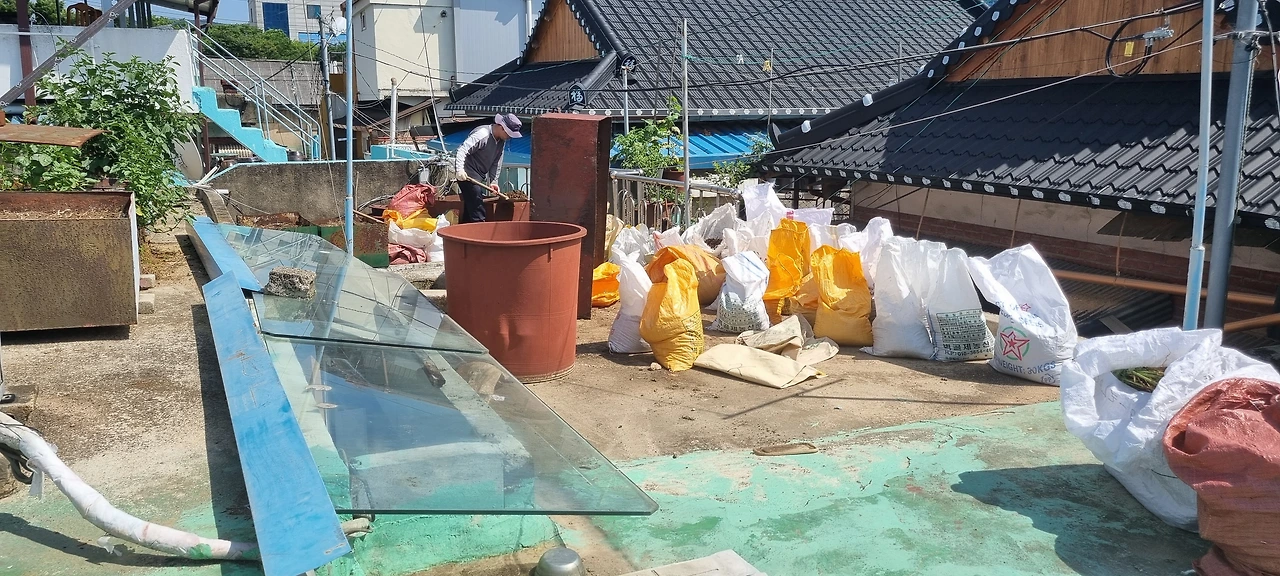 태풍이 오기 전에 빈집에 문제가 생기지 않도록 단속하고 청소도 하고 이 집을 어떻게 처리할지도 상의했다.