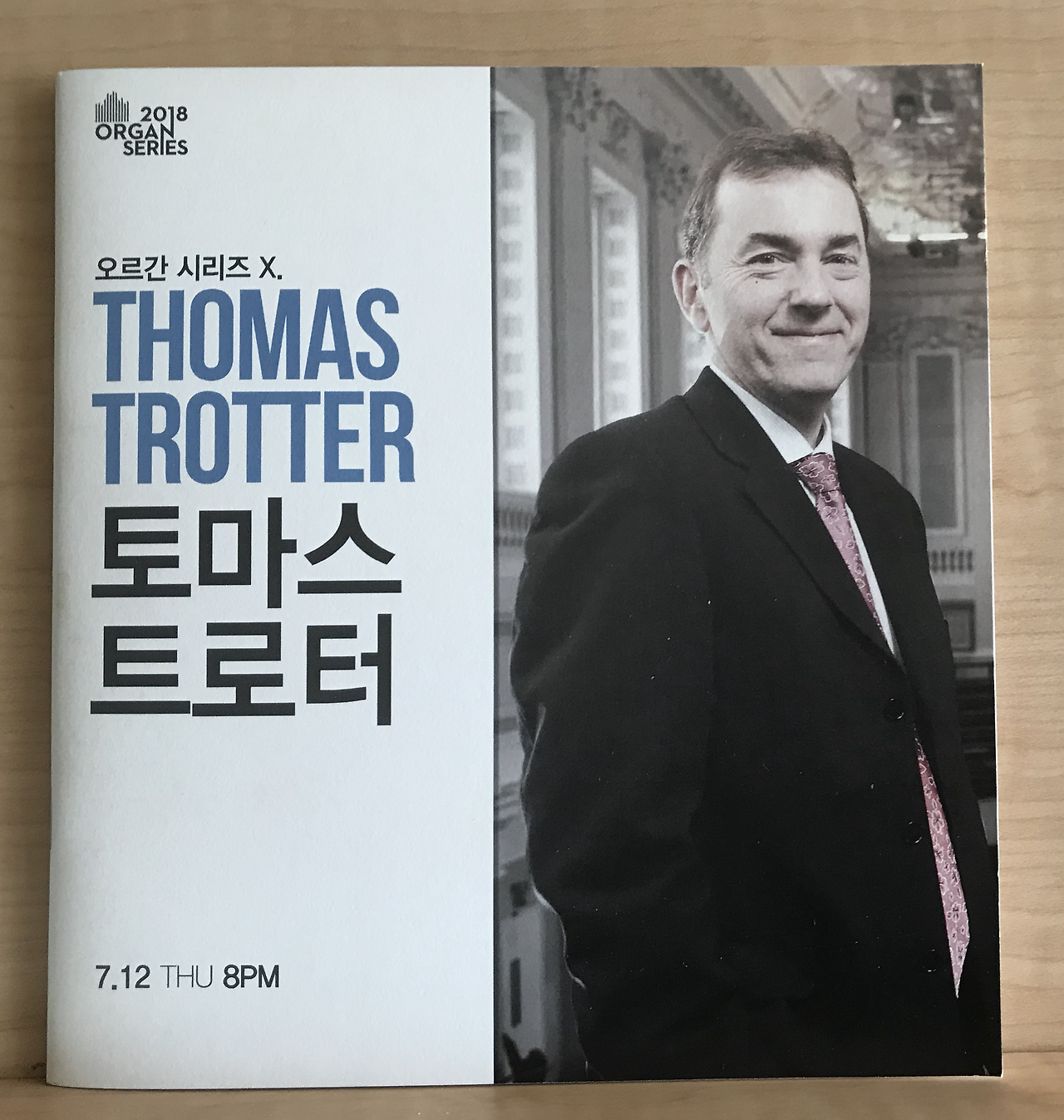 한국에서 오르간 음악은 대놓고 마이너 분야이긴 하지만 그 안에서도 주로 유럽, 특히 독일과 프랑스만 국한되어진 오르간 음악 생태가 조성되어 있다. 요즘은 종종 미국 연주자들도 방문하기는 하지만 특별한 명성이 있는 오르가니스트를 제외하고는 대부분 독일과 프랑스 오르가니스트들이 한국에 알려져 있다. 그 이유는 당연히 오르간 음악이 17세기 독일에서 부터 19세기 프랑스에서 전성기(?)를 이루었기 때문이겠지만 또 다른 한편으로는 당대의 한국 오르가니스트의 대다수가 독일과 프랑스에서 유학했기 때문이기도 할 것이다. 이러저러한 이유로 영국에서 오신 이 훌륭한 오르가니스트는 한국에서 크게 각광받지 못한 채 연주대 앞에 앉아 있었다.