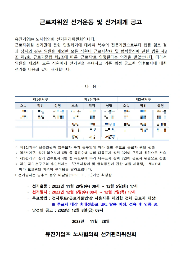 원래 법대로라면 과반노조인 우리가 근로자위원을 지명할 수 있었지만, 회사는 끝까지 과반노조 인정을 거부했다.