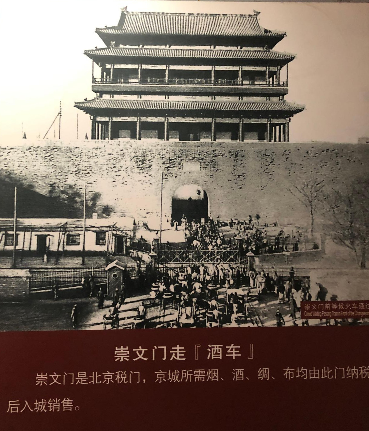 - 스웨덴 미술사학자 스웨덴 미술사학자 Osvald Siren 촬영. 성문과 옹성(翁城) 안쪽에서 기차가 지나가기를 기다리는 사람들
