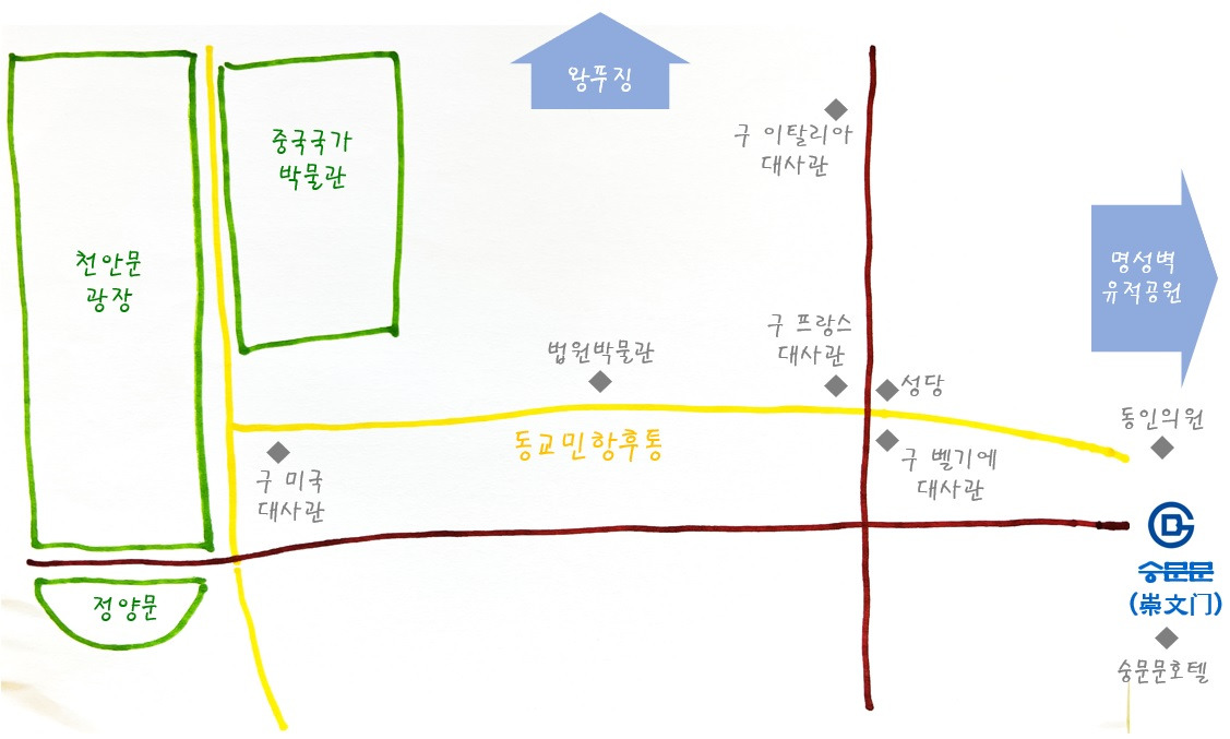 숭문문 근처는 동교민항 후통과 명성벽유적지 (내성 동남각루)가 제일 유명하지만, 더불어서 또 하나 재미있는 장소가 있다.