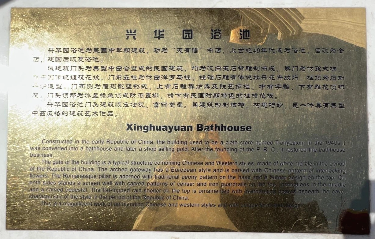 선어구를 걷다보면 몇몇 역사적 건물들이 남아있고 보존되어 있다. 옛 목욕탕이었던 흥화원 (兴华园浴池/싱화웬)이 그 중 하나이다. 이 목욕탕은 민국시절에 건축되었으며 원래는 "천유신포점(天有信布店/천을 파는 곳)"이었다. 1940년 전후로 목욕탕이 되었다가, 잠시 금은방으로 되었다가, 건국 후에 다시 목욕탕으로 되어, 명칭을 흥화(兴华/싱화)로 하여 정식 영업을 하게 되었다고 전해진다.