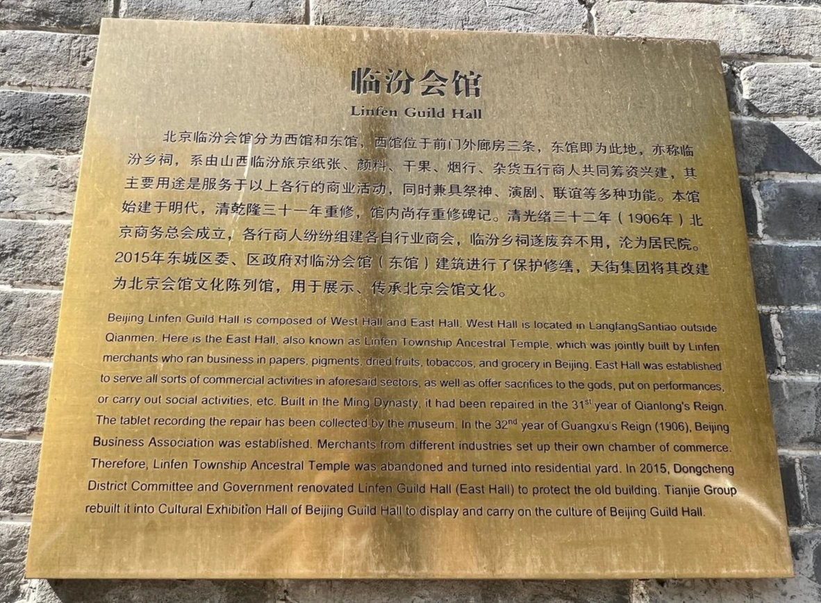 임분회관 (临汾会馆/린펀회관) – 西打磨厂胡同105号.