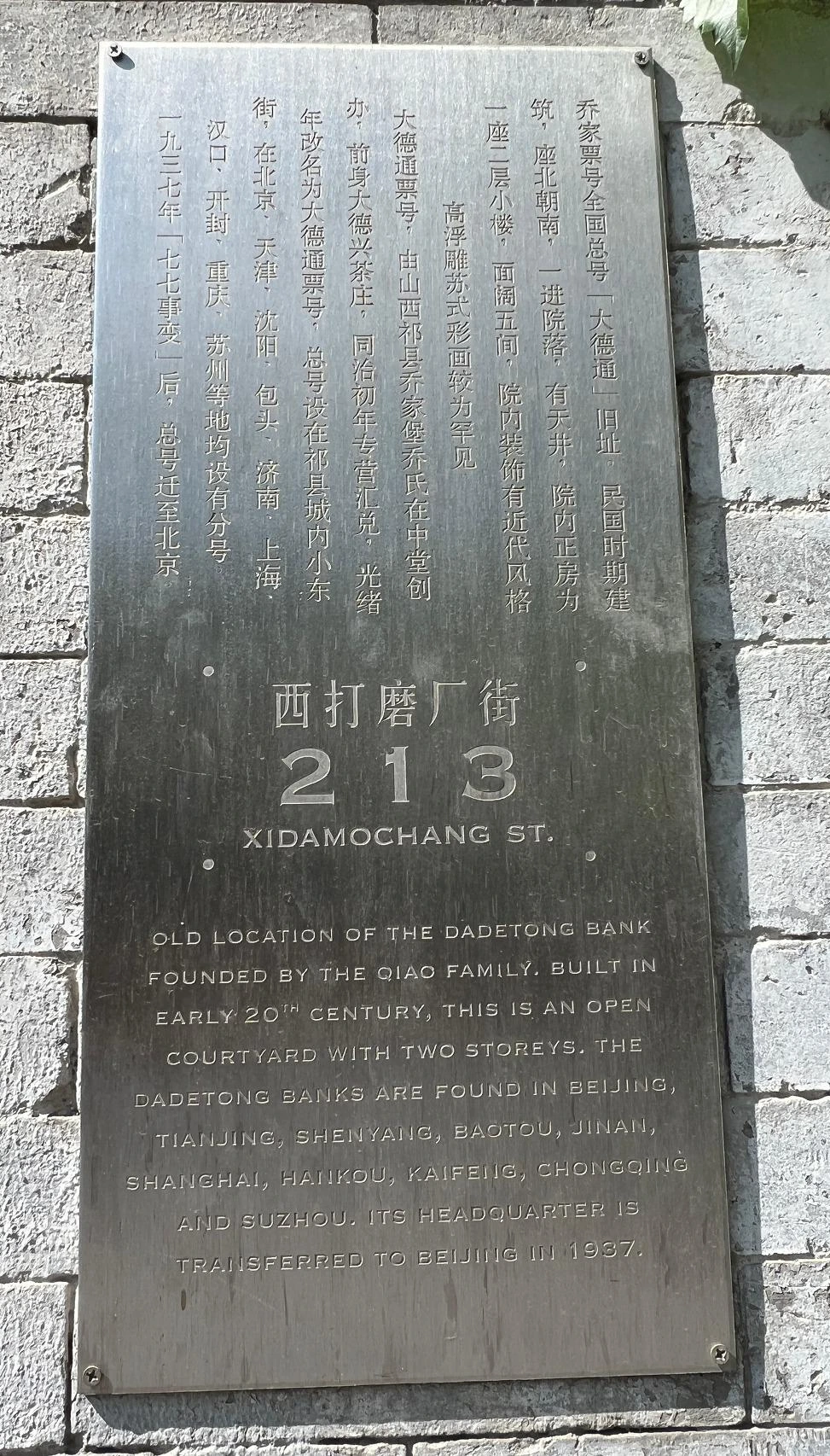 대덕통은행 옛터 (大德通 旧地) - 西打磨厂街213号.