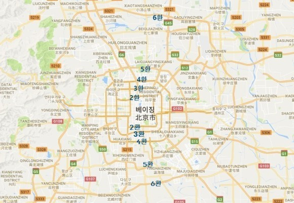 한국인들 주요 거주지인 왕징 望京은 북동쪽 4환과 5환 사이에 위치하고 있다.