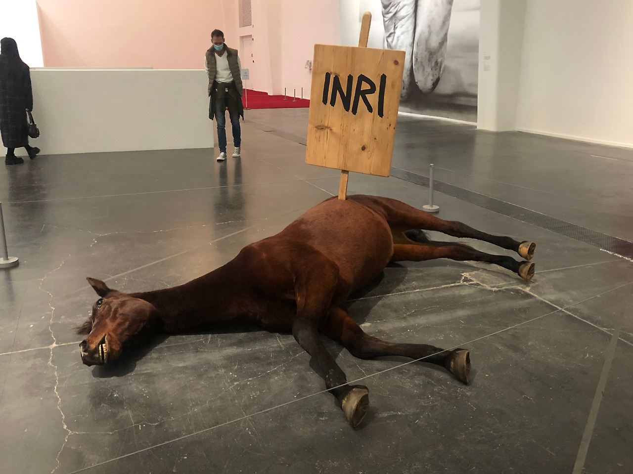 1960년 생 이탈리아 예술가인 마우리치오 카텔란은 위트와 역설적 유머로 사회 전반을 풍자하며 다양한 방식 및 행위 예술로 표현하는, 한 마디로 예술계의 악동같은 캐릭터. UCCA 전시에서도 그의 유머감각과 화법을 느낄 수 있었다.