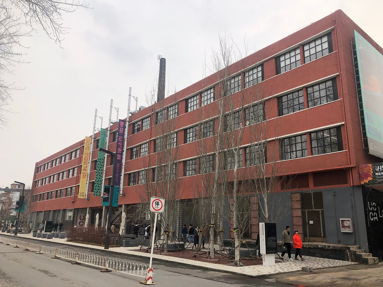 798예술구 한 복판 거대한 붉은 건물, 그리고 공장 굴뚝. 이 건물 중심으로 하여 항상 사람들로 붐빈다