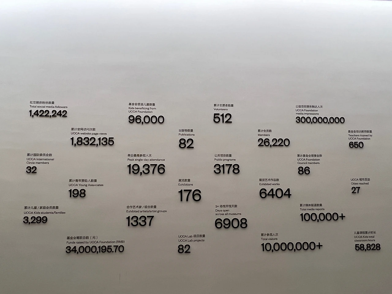 UCCA는 2018년 북경시 문화국이 인증한 미술관 자질을 공식 인정받아 북경시민정국과 홍콩 정부의 허가를 받아 비영리 예술재단을 설립하였다. 소매 플랫폼인 UCCA 스토어, UCCA 키즈 아트 센터, 그리고 예술과 브랜드의 다양한 크로스오버 협업을 모색하는 UCCA Lab 등이 있다. (베이징 & 상하이)