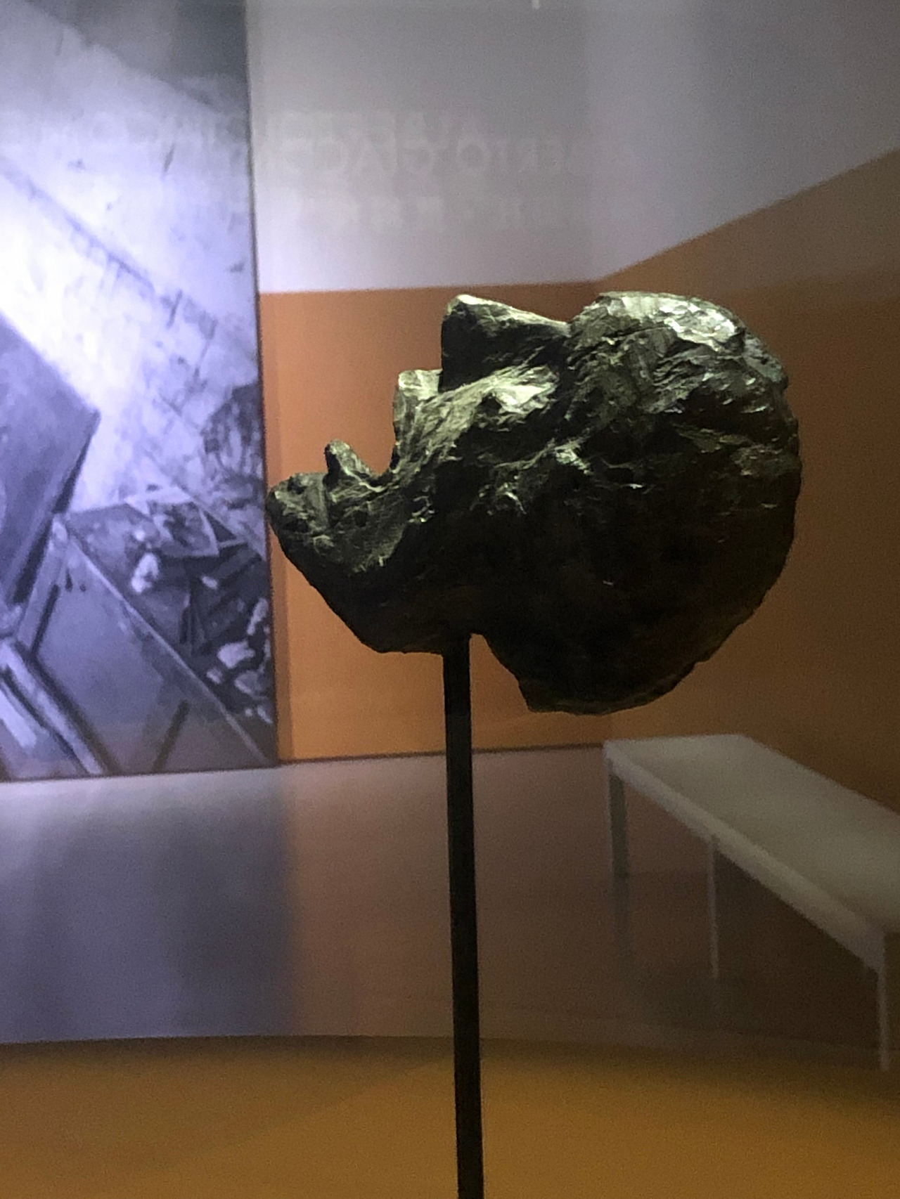 <장대 위의 두상> (1947) - 친구인 피터 반 뫼흐의 갑작스러운 죽음을 표현한 작품으로 숨을 거두기 직전의 모습을 표현했다고 한다. 평생 지인들의 죽음을 가까이서 목격하며 죽음에 트라우마를 가지고 있었던 자코메티의 삶을 보여준다.