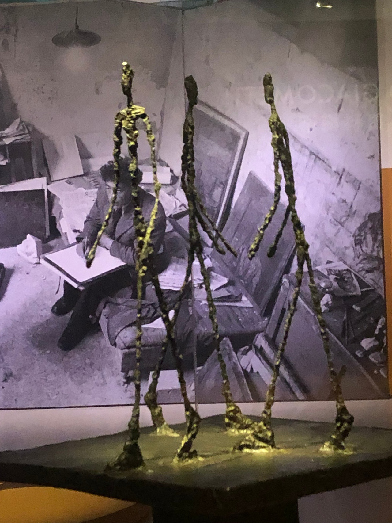 스위스의 조각가이자 화가인 알베르토 자코메티 (1901~1966). 스위스 100프랑 화폐의 주인공. 가늘고 긴 인체표현이 특징이며 베네치아 비엔날레에서 대상을 수상하였다.
