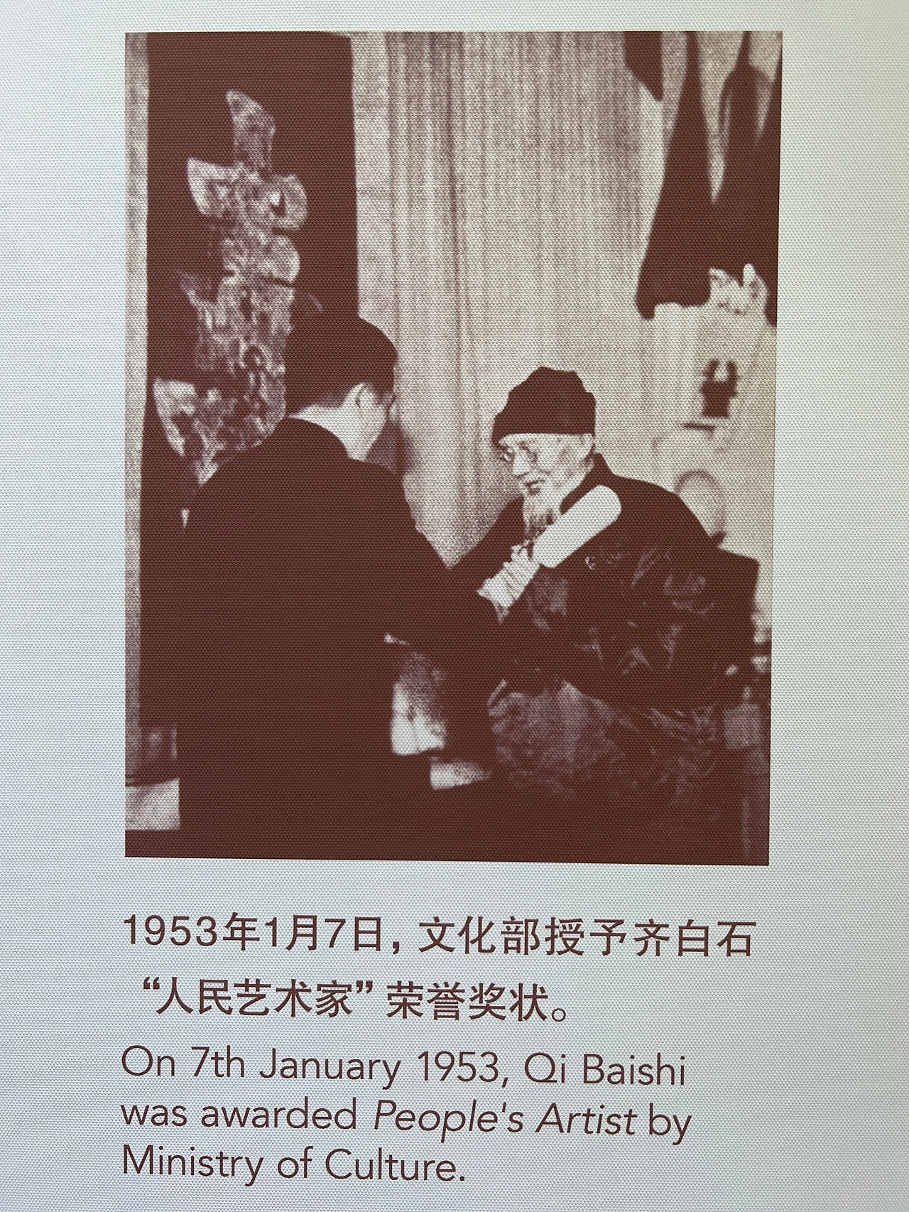 제백석(齐白石/치바이스)은 1864년 중국 호남성 상담현(湖南省 湘潭悬) 출신의 문인화가, 서예가, 조각가로서, 중국 대표 화가로서의 실력뿐 아니라 가난한 집안에서 그림공부 체계적으로 배우지 않은 그가 중국의 대표 화가가 되기까지의 드라마틱한 스토리로도 유명하다. 젊은 시절은 가난하여 학교를 가지 못하고 목공소에서 일하면서 틈틈이 독학으로 그림을 배웠으며, 40세에 전국을 여행하여 57세 전후에 북경에 정착하여 그림에 전념했다. 초화, 벌레, 새우 등을 애정과 유머가 넘치는 화풍으로 그려냈다. 나는 중국 미술 문외한이지만, 중국에 짧지 않은 시간 거주하고 있으므로 ‘중국의 피카소’라 불리는 제백석의 그림 정도는 한 번 접해봐야겠다 싶어서 북경화원미술관을 방문했다.