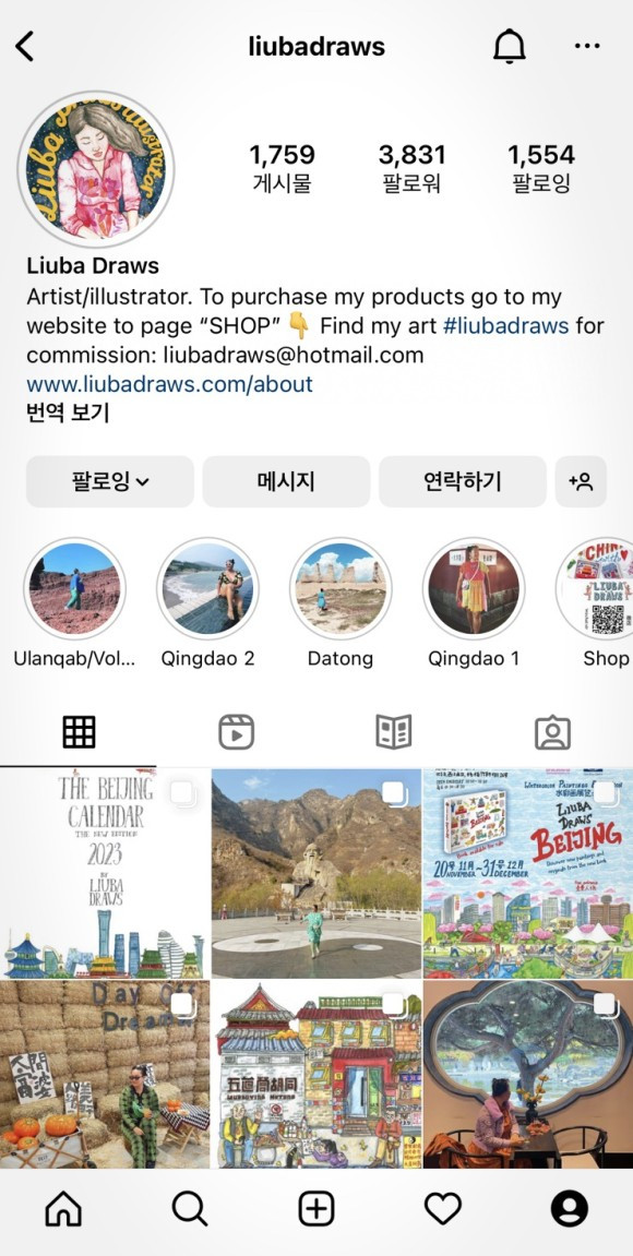중국을 잠시 방문하거나 계속 거주하는 사람들 모두에게 리우바의 그림 속에 숨겨진 도시의 별난 모습을 발견하는 흥미로움을 선사합니다. 리우바의 팬들은 베이징에 대한 개인적인 추억을 완벽히 간직하고 싶어서 그녀에게 작품을 의뢰하거나 자신들의 상품이나 서비스를 홍보하기 위해 그녀의 작품을 상업적으로 이용하기도 합니다. 또한 리우바는 현재 ‘리우바 드로(Liuba Draws)’라는 개인 브랜드를 가지고 달력, 카드, 열쇠고리, 자석, 그림 프린트물 등의 여러 상품을 개발 및 판매 중입니다.