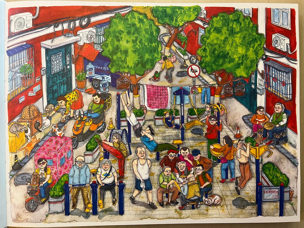 대륙의 웅장한 역사 관광지들도 좋지만 정겨운 골목 모습이 참 좋다. 마지막 그림은 정말 '전형적인' 베이징 거주 단지의 모습이다. 시내 중심부로 갈수록 더 많이 볼 수 있는데 노인분들이 항상 활기차게 운동하거나 사교생활 즐기는 모습이 참 좋아보인다. 중국에 와서 놀란 점 중 하나가 허리 굽고 다리 휜 어르신들을 거의 볼 수 없다는 것! 그림 맨 위 카이당쿠(开裆裤) 입은 아기 궁둥이가 시선을 사로잡는다 ^^ 중국 처음 왔을 때 내가 가장 문화충격을 받은 것 중 하나 - 어린 아이들에게 세로로 쫙 개방된 바지를 입혀서 배변 훈련 쉽게 하기 위한 것인데, 더울 때나 추울 때나 어디서나 자주 마주쳤다. 북경에 온 후 거의 못 봤는데, 대도시라 그런지 아니면 중국사람들도 인식이 달라지고 있어서인지 모르겠다.