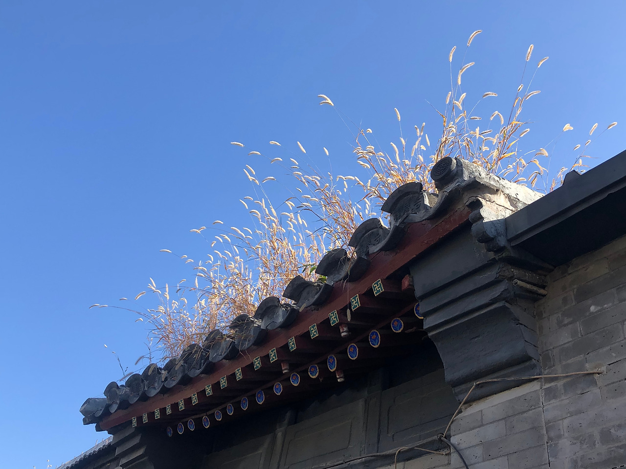지붕 위에 자라는 풀들. 자연은 후통을 포용합니다. / 베이징의 가장 좁은 후통은 폭이 겨우 40cm입니다.
