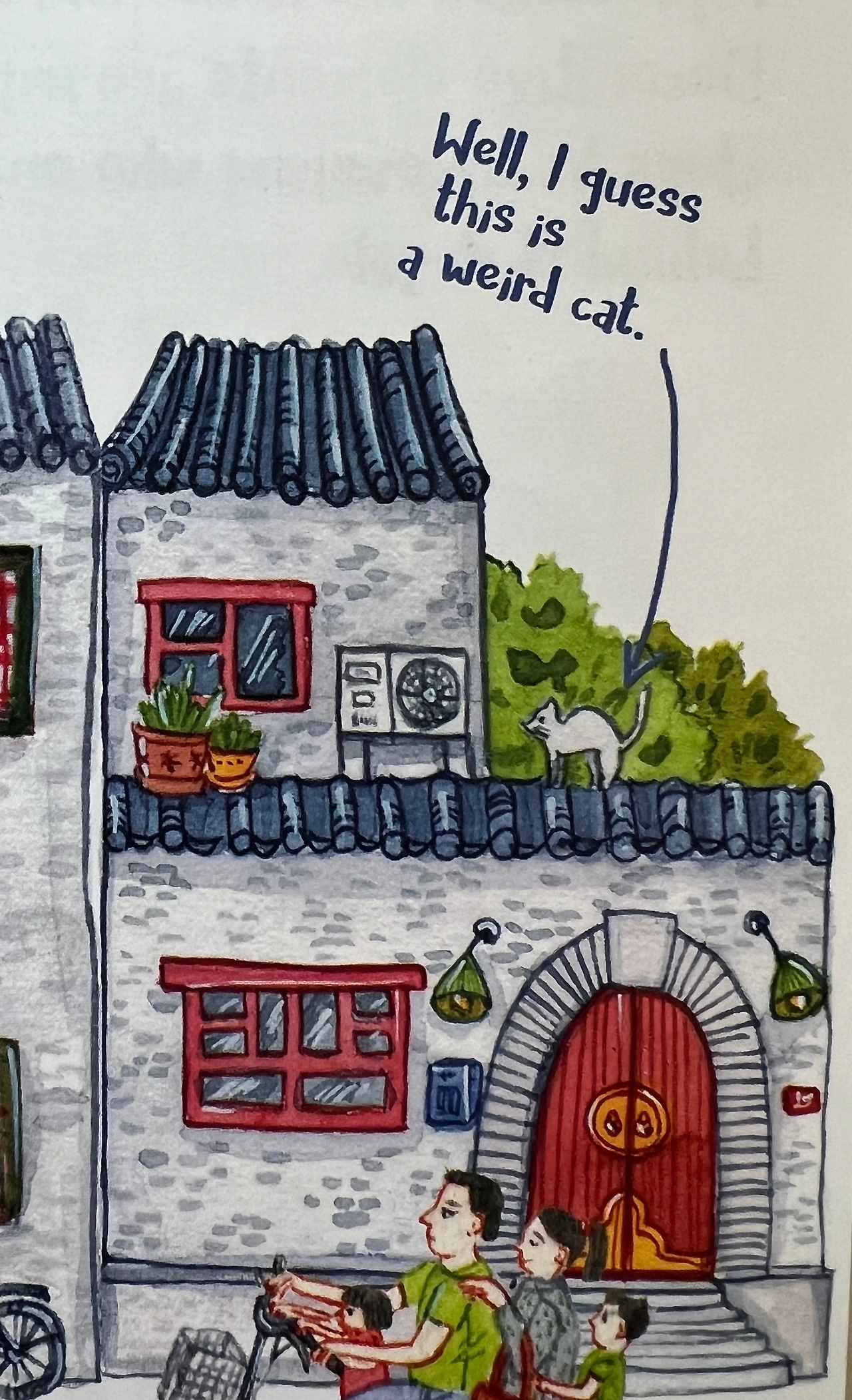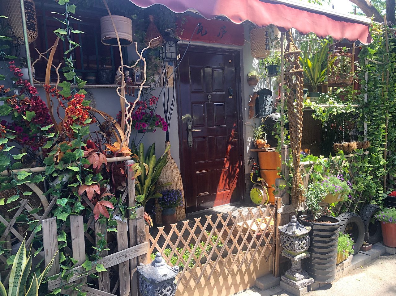 비좁은 후통 가옥들의 부족한 수납 공간 때문에, 주민들은 생활은 집 밖으로 쏟아져나왔습니다. 식물들과 일상 생활 용품들이 골목길에 아무렇지 않게 놓여져 있는 풍경은 독특한 정물화 설정을 만들어냅니다.
