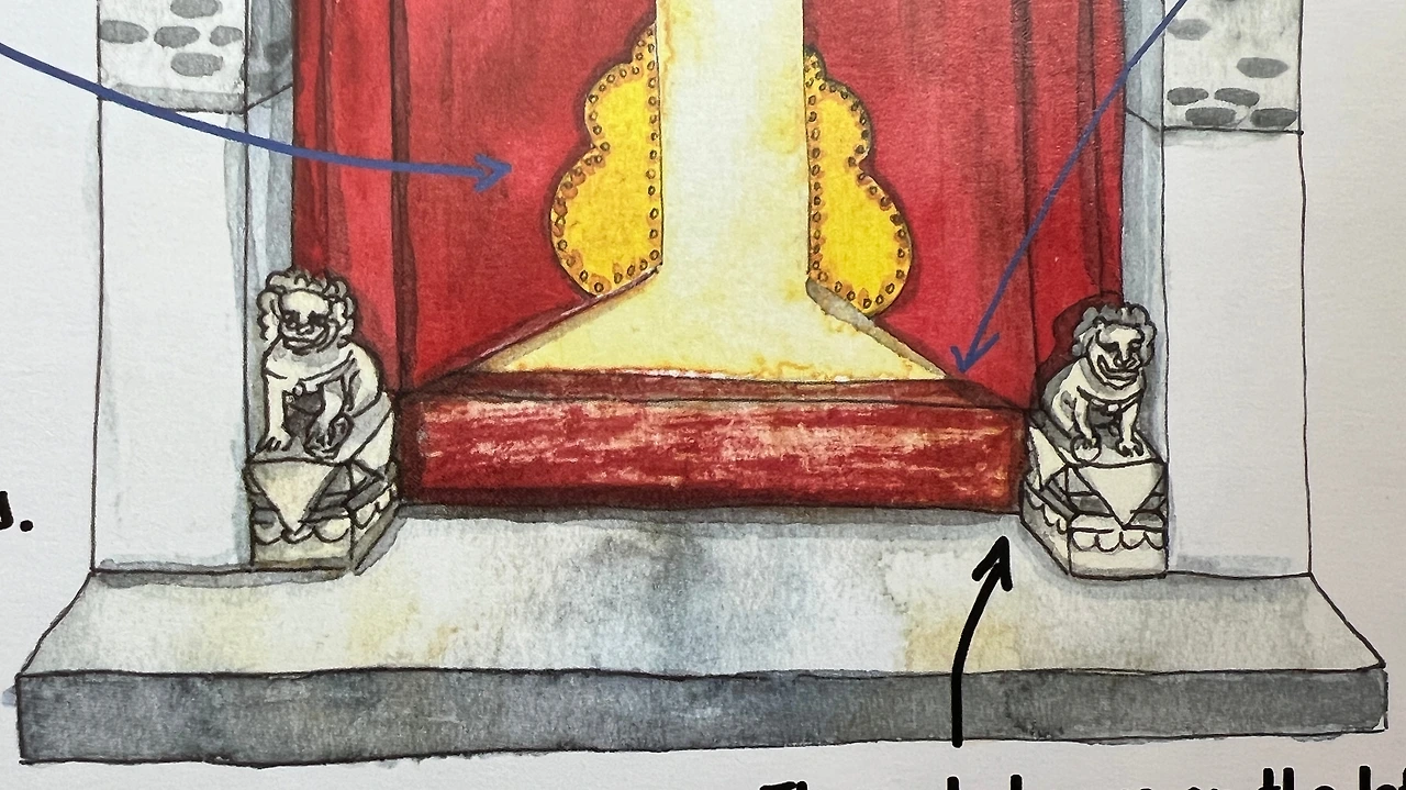 돌사자는 대문 입구 양옆에 위치합니다. 암사자의 오른쪽 앞발 아래에는 항상 새끼 사자가 있으며, 숫사자의 왼발 아래에는 구슬이 놓여있습니다.
