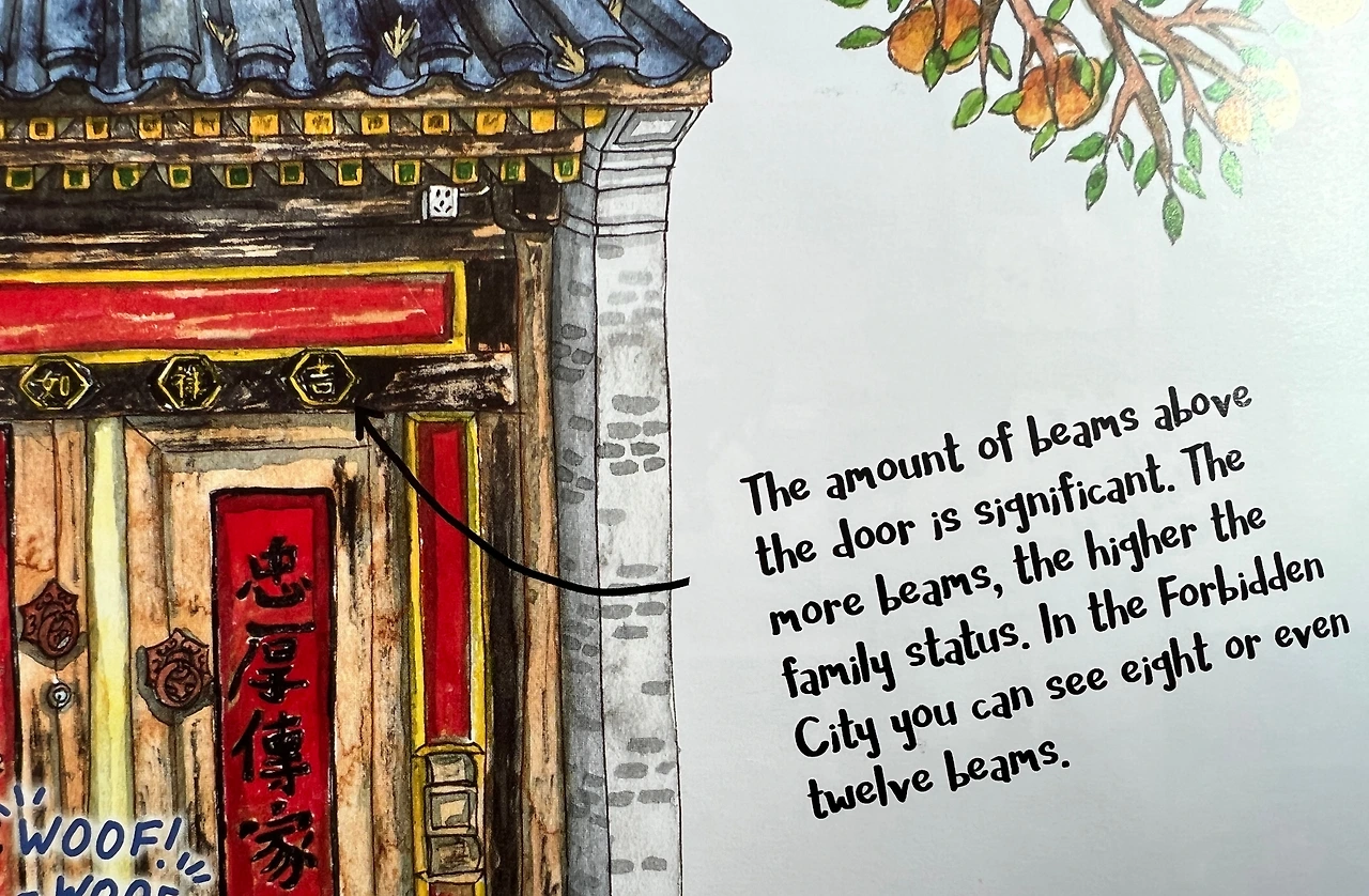 The amount of beams above the door is significant. The more beams, the higher the family status. In the Forbidden City you can see eight or even twelve beams.