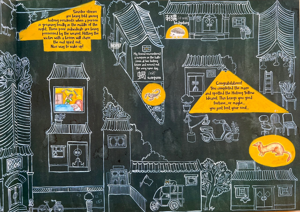 You completed the maze and spotted the Hutong Yellow Weasel. This brings you good fortune... or maybe... you lost your soul...
