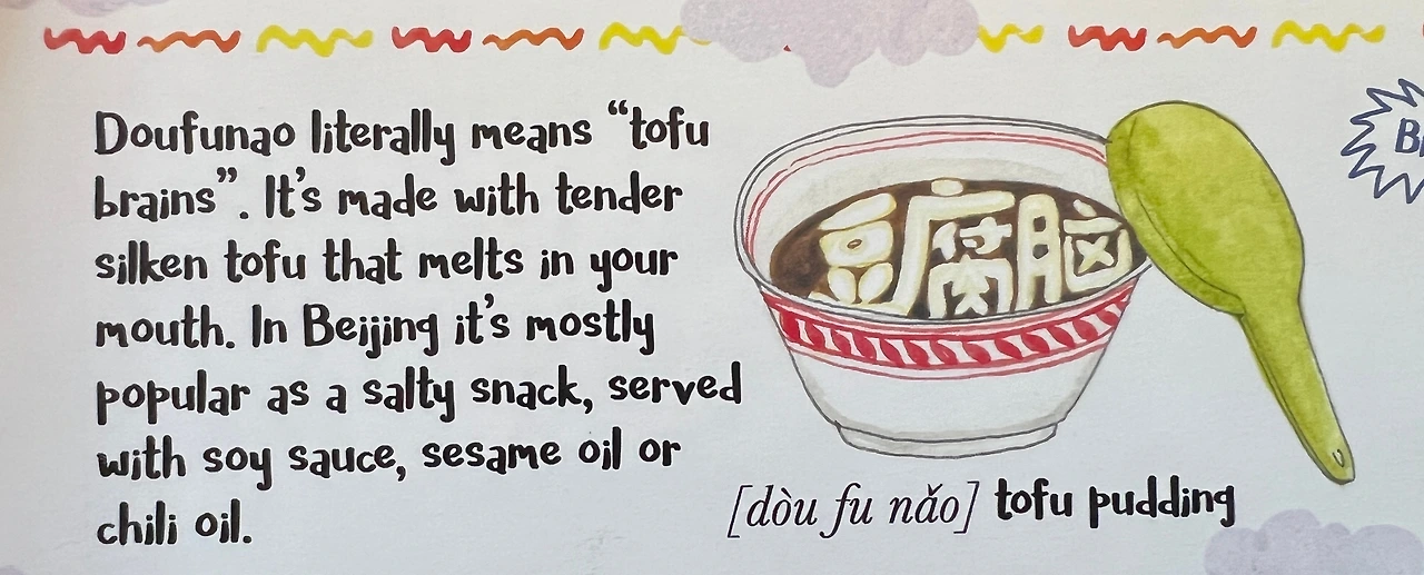 todu pudding. Doufunao literally means "tofu brains". It's made with tender silken tofu that melts in your mouth. In Beijing it's mostly popular as a salty snack, served with soy sauce, sesame oil or chili oil.