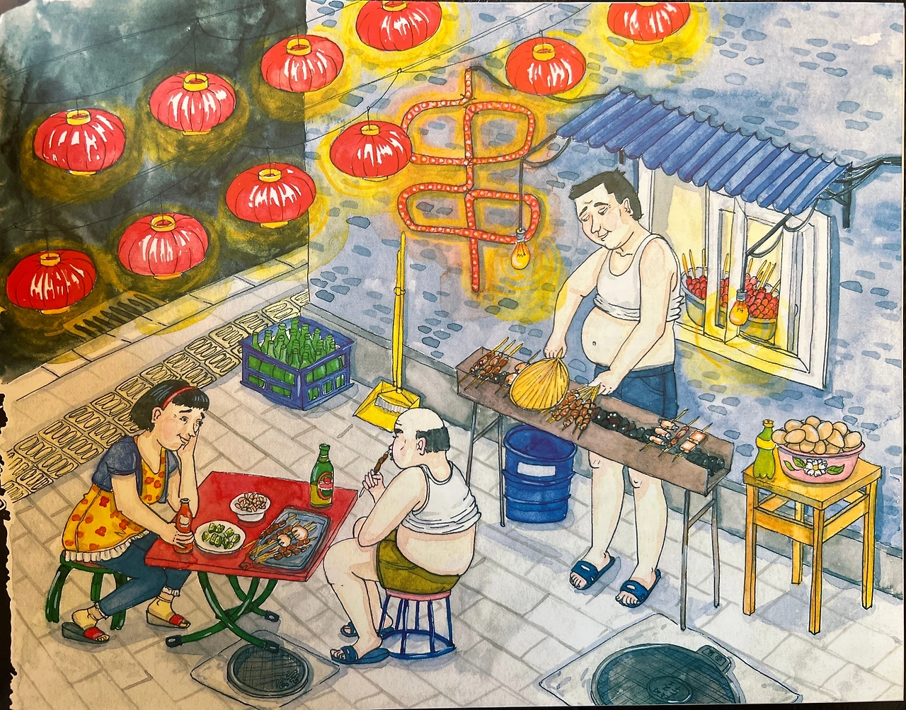 촨(串) BBQ는 밖에서 맥주 한 병 들고 작은 의자에 앉아 즐기는 것을 의미합니다. 그러나 최근 몇 년 동안 공기오염과 젠트리피케이션의 영향으로 인해 많은 꼬치 가게들이 문을 닫았습니다. 대부분은 실내로 이동했는데, 지금도 여전히 임시로 이곳저곳 생기는 야외 스타일을 목격할 수 있습니다.
