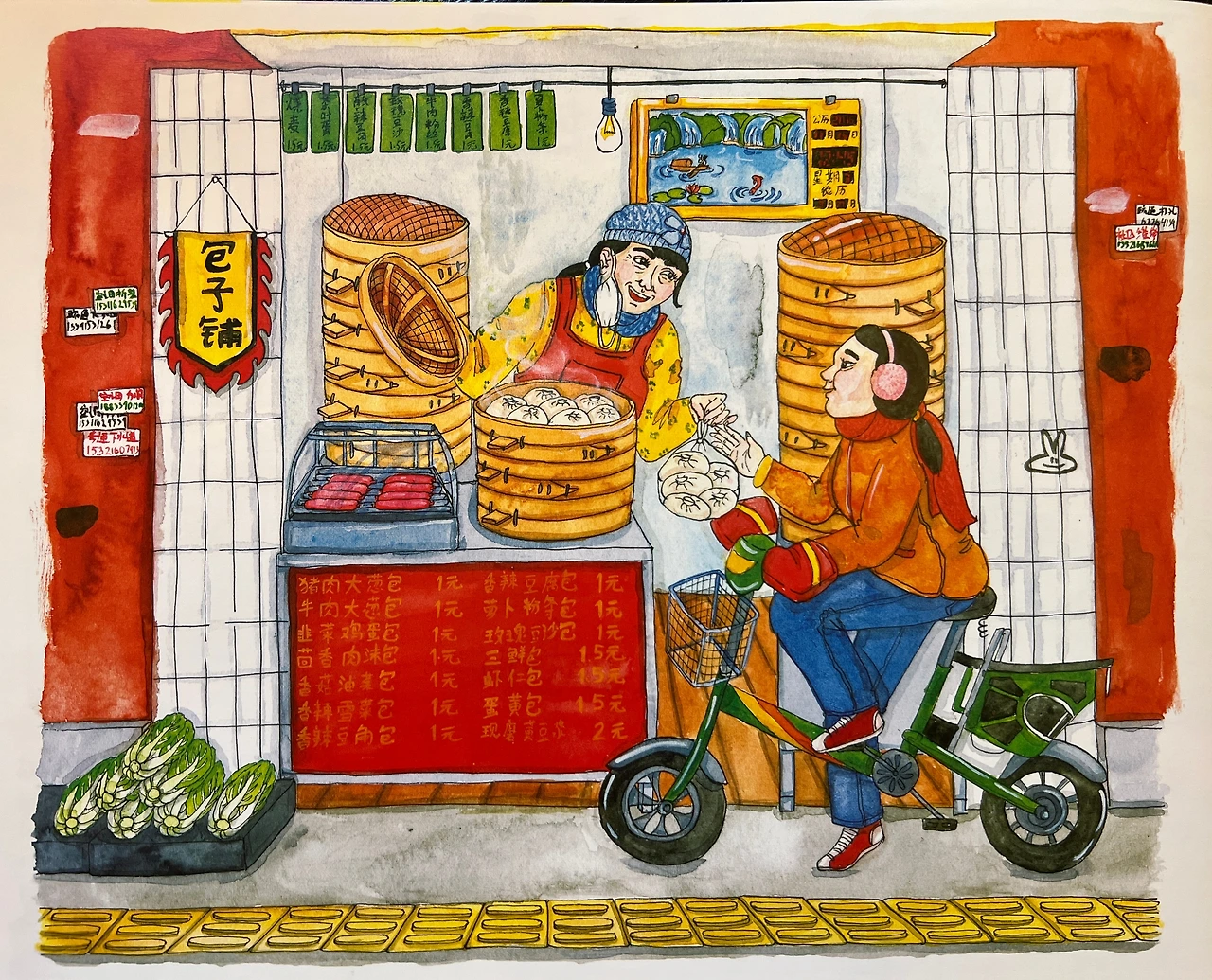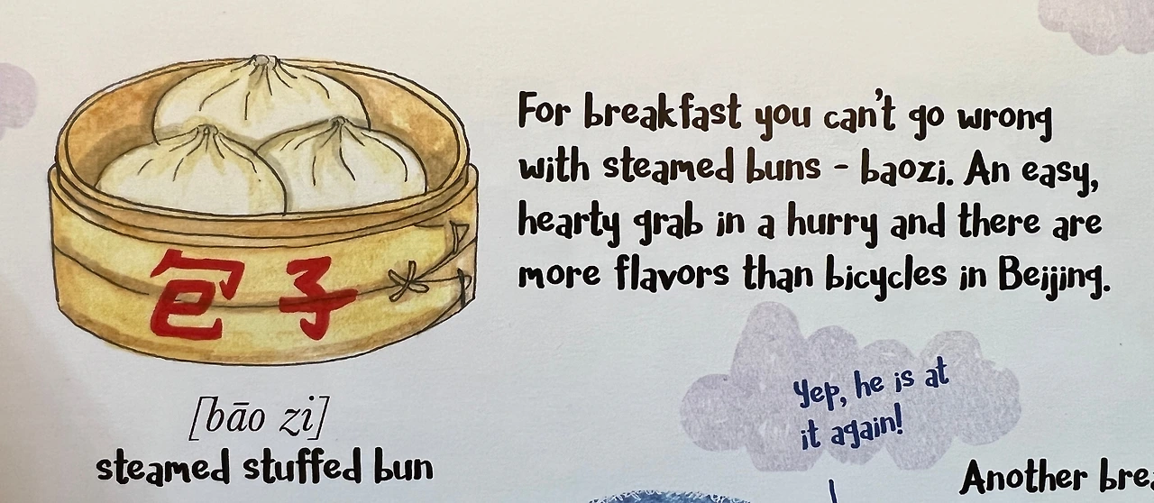 steamed stuffed bun. For breakfast you can't go wrong with steamed buns - baozi. An easy, hearby grab in a hurry and there are more flavors than bicycles in Beijing.