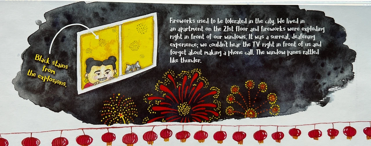 Fireworks used to be tolerated in the city. We lived in an apartment on the 21st floor and fireworks were exploding right in front of our windows. It was a surreal, deafening experience; we couldn't hear the TV right in front of us and forget about making a phone call. The window panes rattled like thunder.