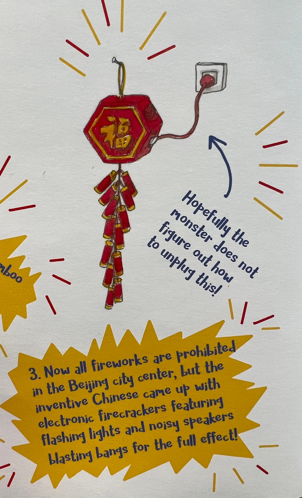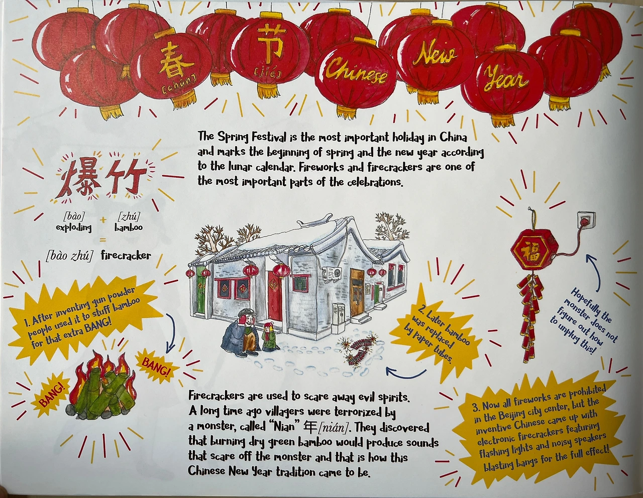 폭죽은 나쁜 기운을 물리치는데 사용됩니다. 오래 전에 마을 사람들이 ‘니엔’이라는 이름의 괴물 때문에 공포에 떨었다고 합니다. 그들은 건조된 푸른 대나무를 태우면 괴물을 겁주는 소리가 난다는 것을 알게 되었고, 이후 이는 춘절의 전통으로 내려오게 되었습니다.