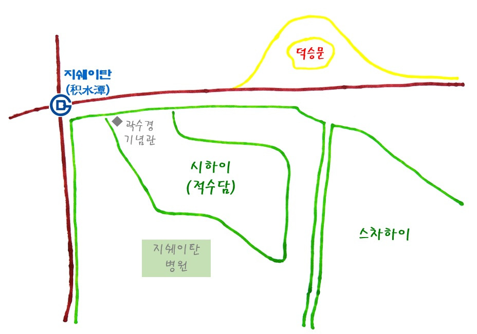 대운하의 목적은 북경까지의 물자 운반이었다. 그 조건에 가장 유리한 곳이 적수담(积水潭)이었기에 경항대운하의 최북단 총괄 조운부두가 되었다. 경항대운하를 완성한 위대한 과학자인 곽수경의 업적과 대운하의 이야기를 담은 곽수경기념관(郭守敬纪念馆)이 시하이습지공원 모퉁이 언덕 위에 자리잡고 있다. 이보다 더 알맞은 장소는 없다는 생각이 든다.