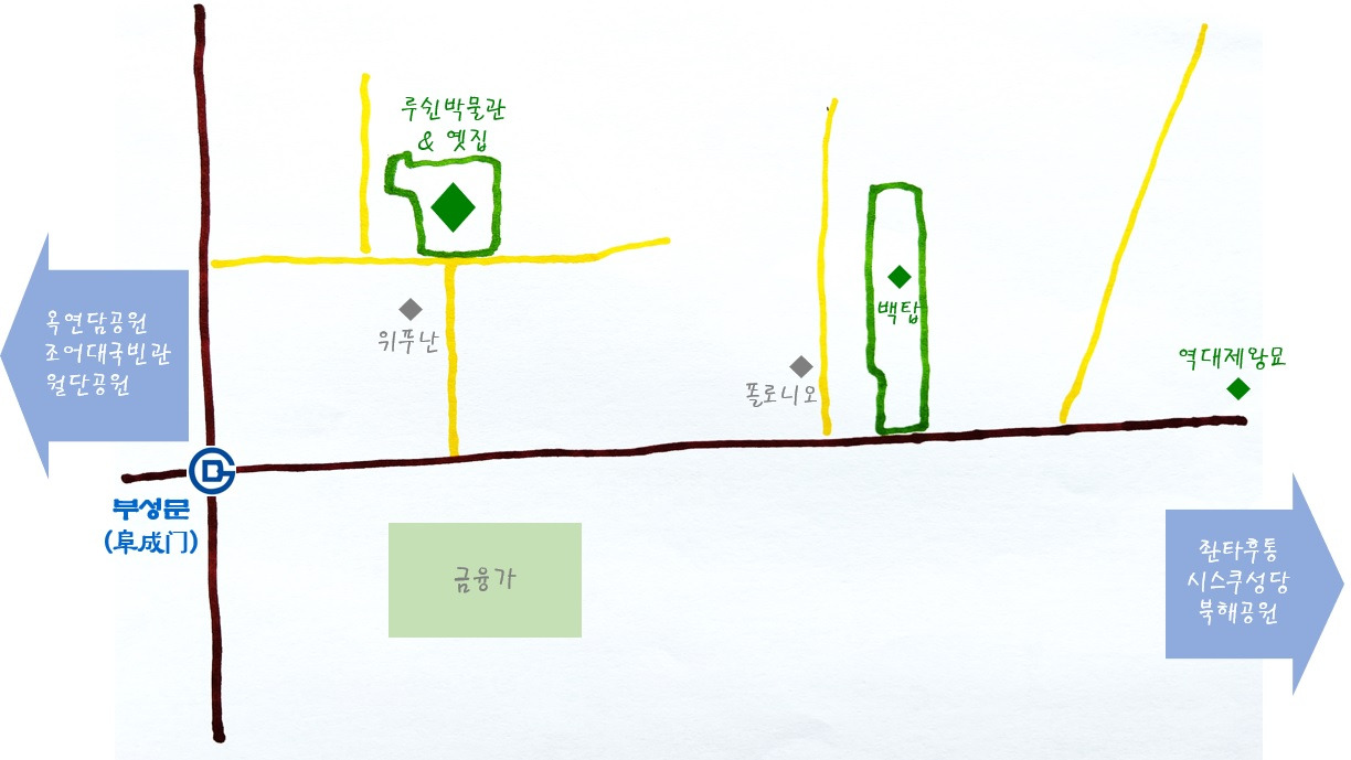 루쉰 박물관과 옛집, 묘응사 백탑과 주변 까페들, 역대제왕묘박물관 등