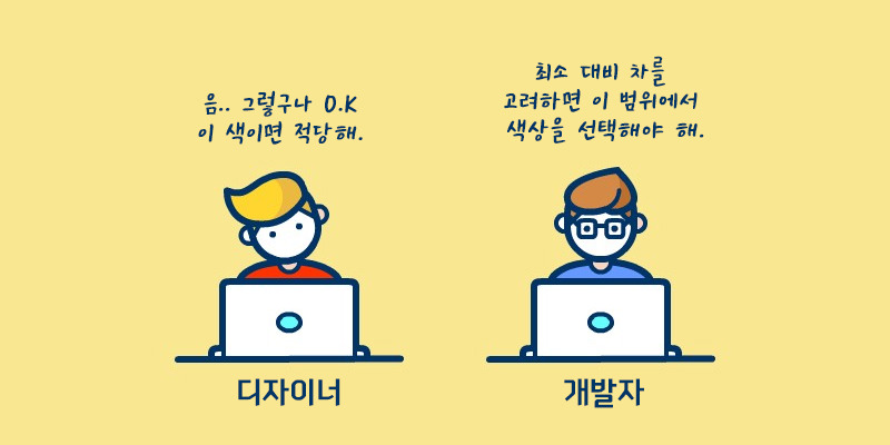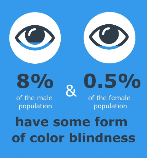 W3C의 저시력 장애인을 고려한 접근성 요구사항 문서에 따르면 전 세계 남성 12명 중 1명(약 8%), 여성 200명 중 1명(약 0.5%)이 색각 장애를 가지고 있음을 이야기하고 있습니다. 즉, 사물이 뿌옇게 보여 잘 보기 힘든 저 시력 장애 사용자, 특정 색상을 볼 수 없거나 혹은 색을 구분할 수 없는 색각 이상 사용자는 웹 애플리케이션 콘텐츠를 쉽게 인식하고 이해할 수 없습니다.