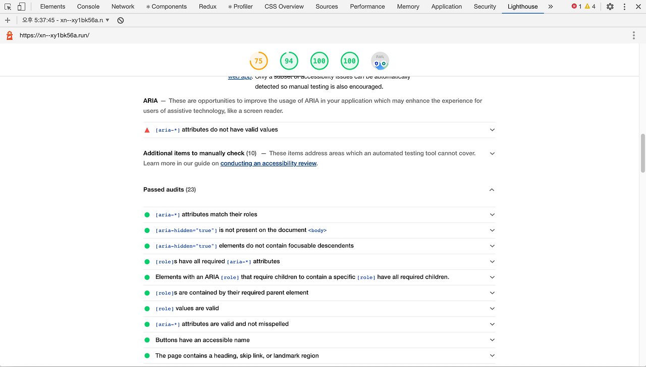Lighthouse 리포트 결과를 통해 미진한 부분의 문제를 확인할 수 있습니다. 문제 해결을 위해서는 먼저 문제 원인을 파악해야 하는데 이러한 자동화 도구를 사용하면 손쉽게 문제를 확인할 수 있을 뿐만 아니라, 원인이 무엇이며 어떻게 해결해야 할지 학습도 가능합니다.